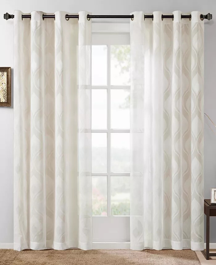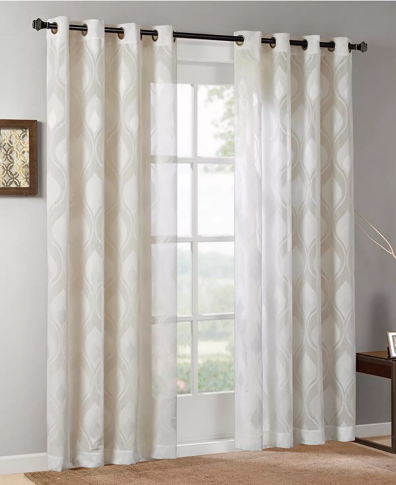 Brand New - Refolded Color: White Size: 50" x 95" Perfect on its own or layered for contemporary appeal, refresh any room's look and feel with the soft lightweight sheer and classic ogee jacquard of this stylish Adele window panel from Madison Park. Dimensions: 50" x 95" Grommet-top header for easy hanging and styling Fits rods up to 1.25" diameter Ogee jacquard Sheer fabric NOTE: photo displays two panels for a finished look, but this item contains only 1 panel. Each panel is sold individually Polyester Machine washable Imported