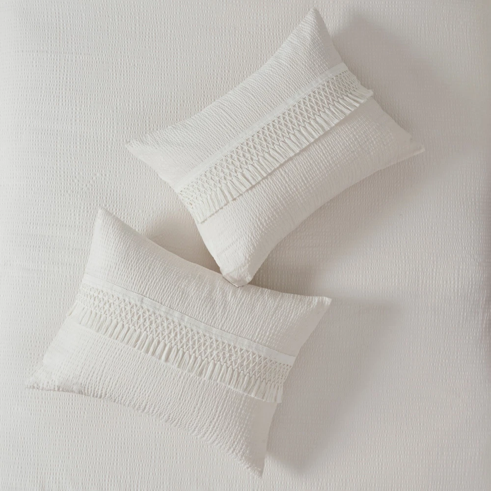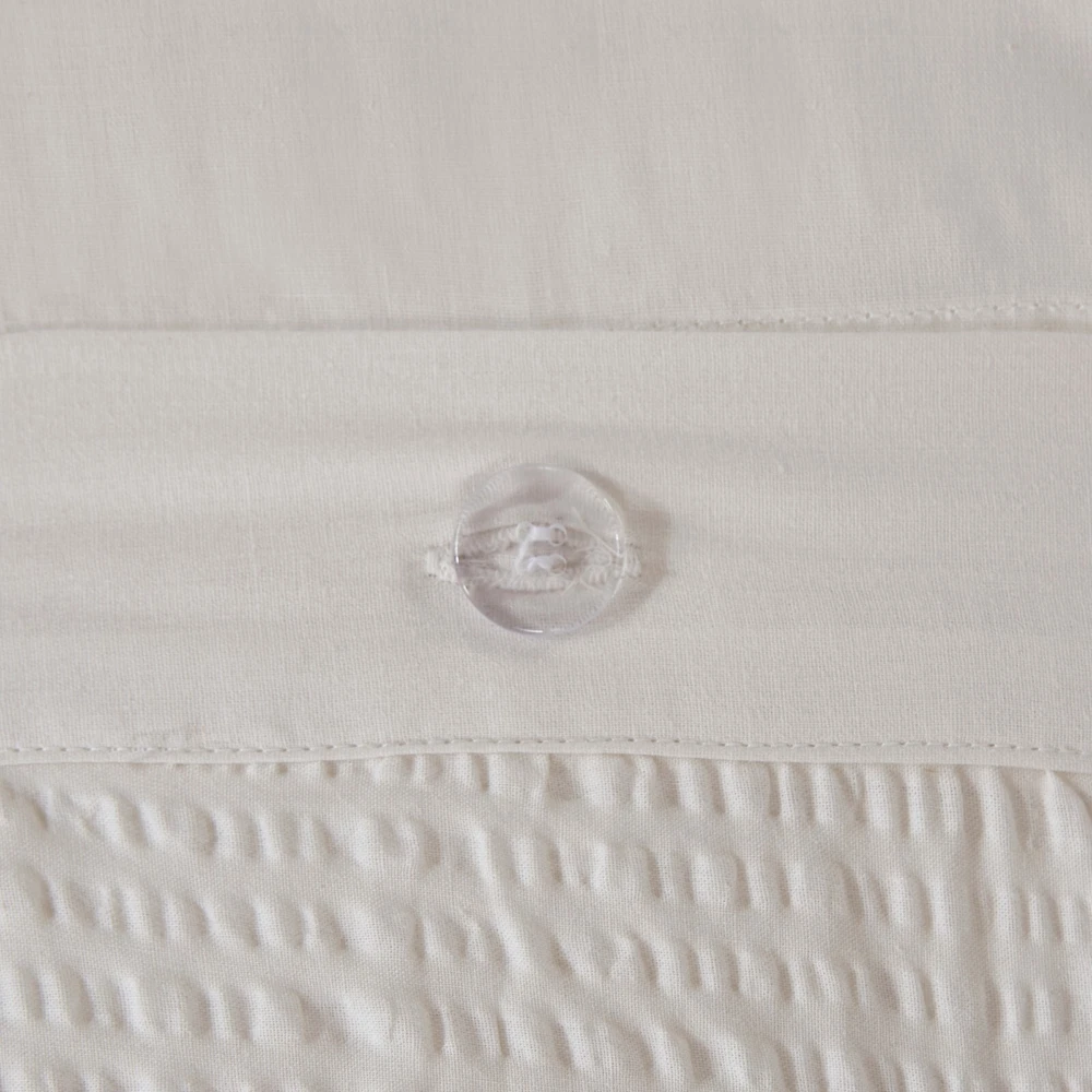 Store Categories Store Categories Bedding Comforters Decorative Pillows Duvet Covers Quilts & Coverlets Sheets Blankets & Throws Mattress Pads Pillows Home Decor Window Treatments Wall Art Home Accents Furniture Beds Dining Seating Ottomans & Benches Accent Chairs Accent Tables Dining Tables Sofas Bath Bath Robes Shower Curtains Towels Bath Rugs Bath Accessories Apparel Pajama Sets Nightgowns Rugs Rugs & Carpets Lighting Lamp Pendant Other Product Overview Details DESCRIPTION Restyle your bedroom with shabby chic allure of the Madison Park Amaya 3 Piece Cotton Seersucker Duvet Cover Set. The ivory seersucker duvet cover is made from 100% cotton and features decorative tassel trims for a globally inspired look. Two matching shams mirror the design of the duvet cover, completing the cotton seersucker bedding set. Machine washable for easy care, this cotton duvet cover set brings a globally inspired style with a soft allure to your bedroom décor. This bedding set is also OEKO-TEX certified, meaning it does not contain any harmful substances or chemicals to ensure quality comfort and wellness. Button closures help secure a comforter insert within the duvet cover and four inside ties in the corners help prevent it from shifting (insert is NOT included). FEATURES • 100% cotton seersucker duvet cover set with tassel trims • Set includes duvet cover and two matching shams • Inside corner ties to secure the insert (not included), button closure • Decorative netted tassel trims • Oeko-Tex Certified, includes no harmful substances or chemicals (# 11-47893) • Machine washable MATERIAL Duvet/Sham: 100% Cotton seersucker with tassels, 100% Cotton reverse Available Sizes: Full/Queen Duvet Cover Set includes: 1 Duvet Cover: 90"W x 90"L, 2 Standard Shams: 20"W x 26"L King/California King Duvet Cover Set includes: 1 Duvet Cover: 104"W x 92"L, 2 King Shams: 20"W x 36"L Bedding Comforters Decorative Pillows Duvet Covers Quilts & Coverlets Sheets Blankets & Throws Mattress Pads Pillows Home Decor Window Treatments Wall Art Home Accents Furniture Beds Dining Seating Ottomans & Benches Accent Chairs Accent Tables Dining Tables Sofas Bath Bath Robes Shower Curtains Towels Bath Rugs Bath Accessories Rugs Rugs & Carpets Lighting Lamp Pendant Product Overview Product Details DESCRIPTION Restyle your bedroom with shabby chic allure of the Madison Park Amaya 3 Piece Cotton Seersucker Duvet Cover Set. The ivory seersucker duvet cover is made from 100% cotton and features decorative tassel trims for a globally inspired look. Two matching shams mirror the design of the duvet cover, completing the cotton seersucker bedding set. Machine washable for easy care, this cotton duvet cover set brings a globally inspired style with a soft allure to your bedroom décor. This bedding set is also OEKO-TEX certified, meaning it does not contain any harmful substances or chemicals to ensure quality comfort and wellness. Button closures help secure a comforter insert within the duvet cover and four inside ties in the corners help prevent it from shifting (insert is NOT included). FEATURES • 100% cotton seersucker duvet cover set with tassel trims • Set includes duvet cover and two matching shams • Inside corner ties to secure the insert (not included), button closure • Decorative netted tassel trims • Oeko-Tex Certified, includes no harmful substances or chemicals (# 11-47893) • Machine washable MATERIAL Duvet/Sham: 100% Cotton seersucker with tassels, 100% Cotton reverse Available Sizes: Full/Queen Duvet Cover Set includes: 1 Duvet Cover: 90"W x 90"L, 2 Standard Shams: 20"W x 26"L King/California King Duvet Cover Set includes: 1 Duvet Cover: 104"W x 92"L, 2 King Shams: 20"W x 36"L