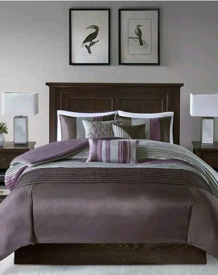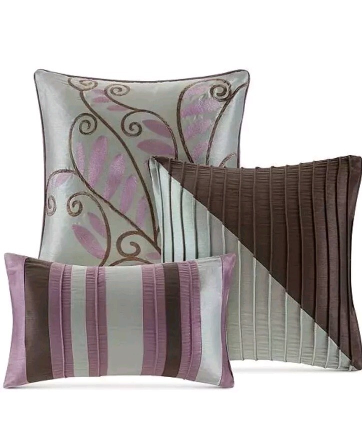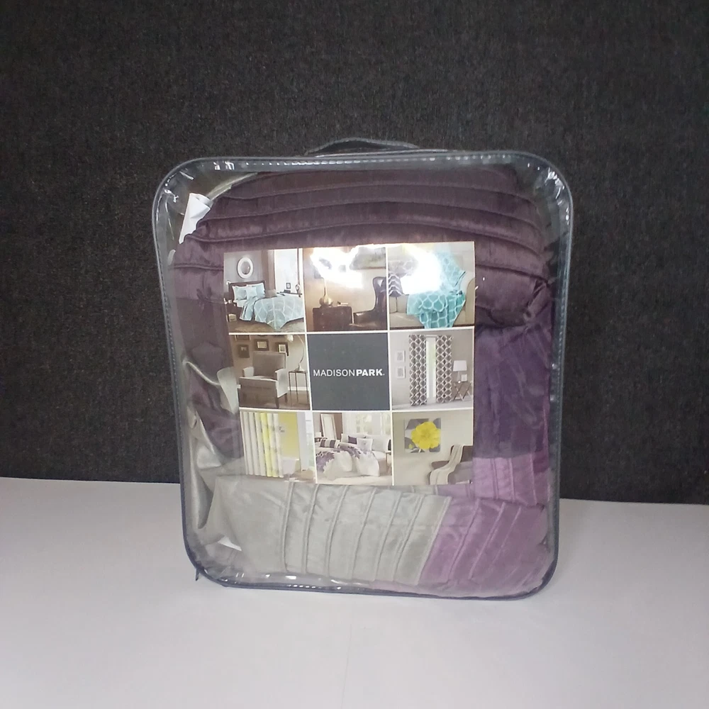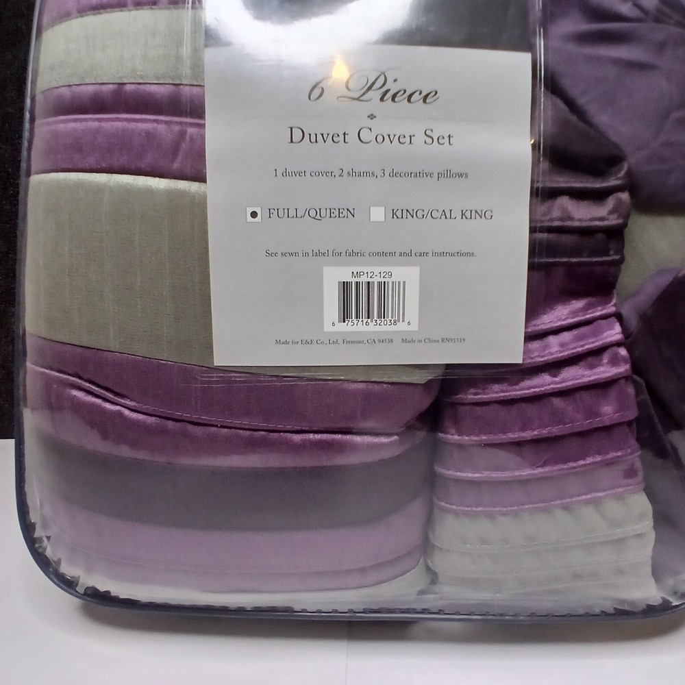 Color: Purple Size: Full / Queen Lavish any room with the luxurious style and comfort of this Amherst duvet cover set from Madison Park, featuring bold colorblocking in contemporary hues, pintucked panels for an added touch of texture and three coordinating decorative pillows for a professionally styled look. Set includes: full/queen duvet (90" x 90"), two standard shams (20" x 26") and three decorative pillows (16" x 16", 18" x 18", 12" x 20") Duvet,pillows,shams, and filling: polyester Machine washable Imported