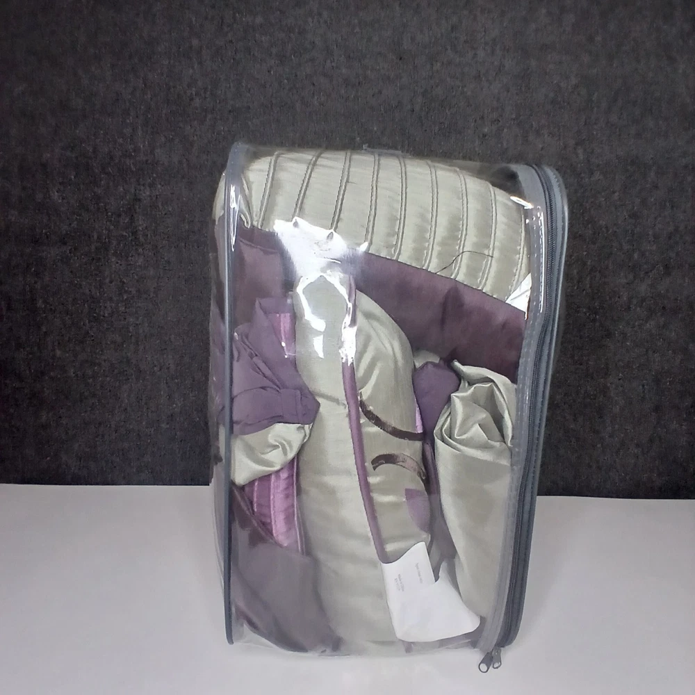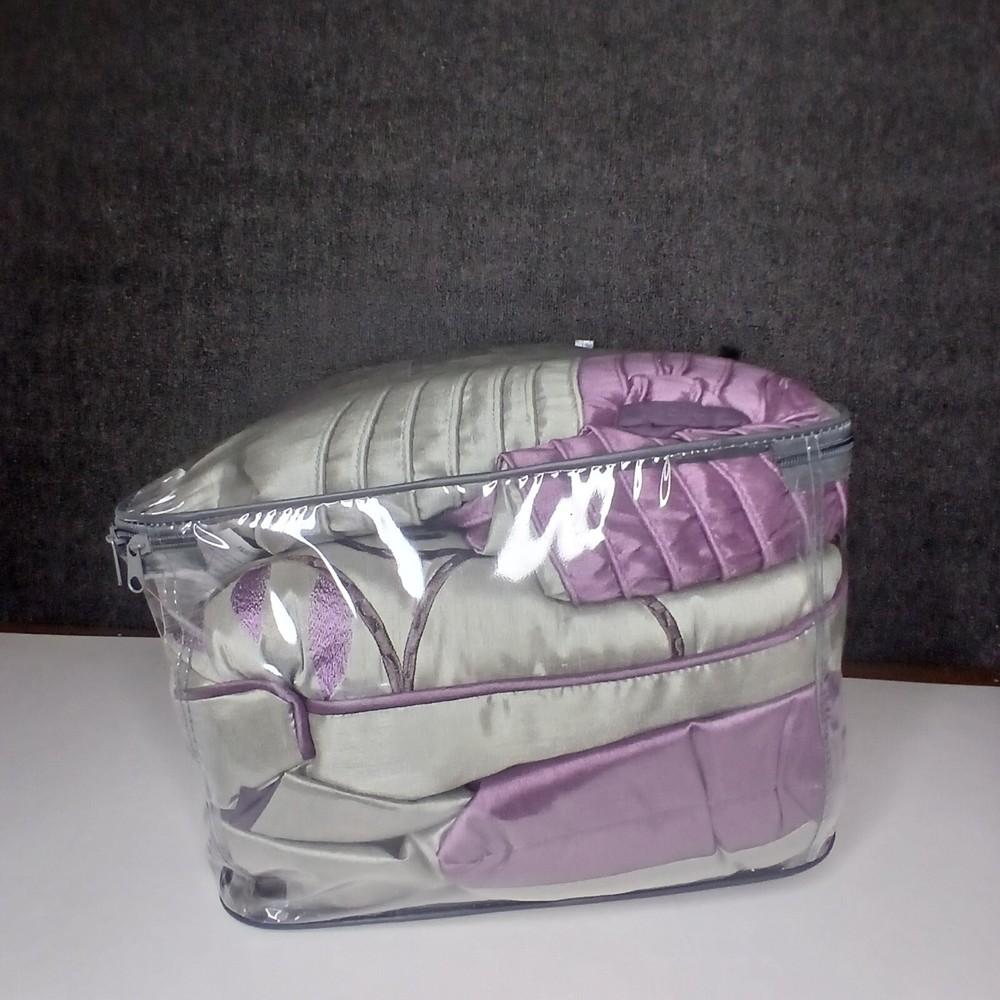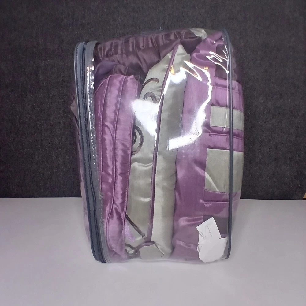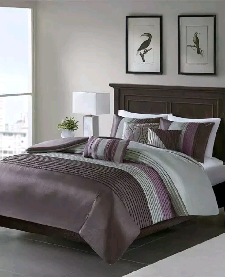 Color: Purple Size: Full / Queen Lavish any room with the luxurious style and comfort of this Amherst duvet cover set from Madison Park, featuring bold colorblocking in contemporary hues, pintucked panels for an added touch of texture and three coordinating decorative pillows for a professionally styled look. Set includes: full/queen duvet (90" x 90"), two standard shams (20" x 26") and three decorative pillows (16" x 16", 18" x 18", 12" x 20") Duvet,pillows,shams, and filling: polyester Machine washable Imported