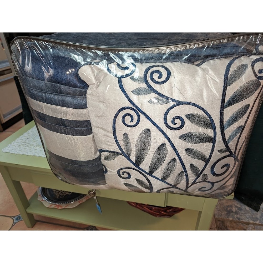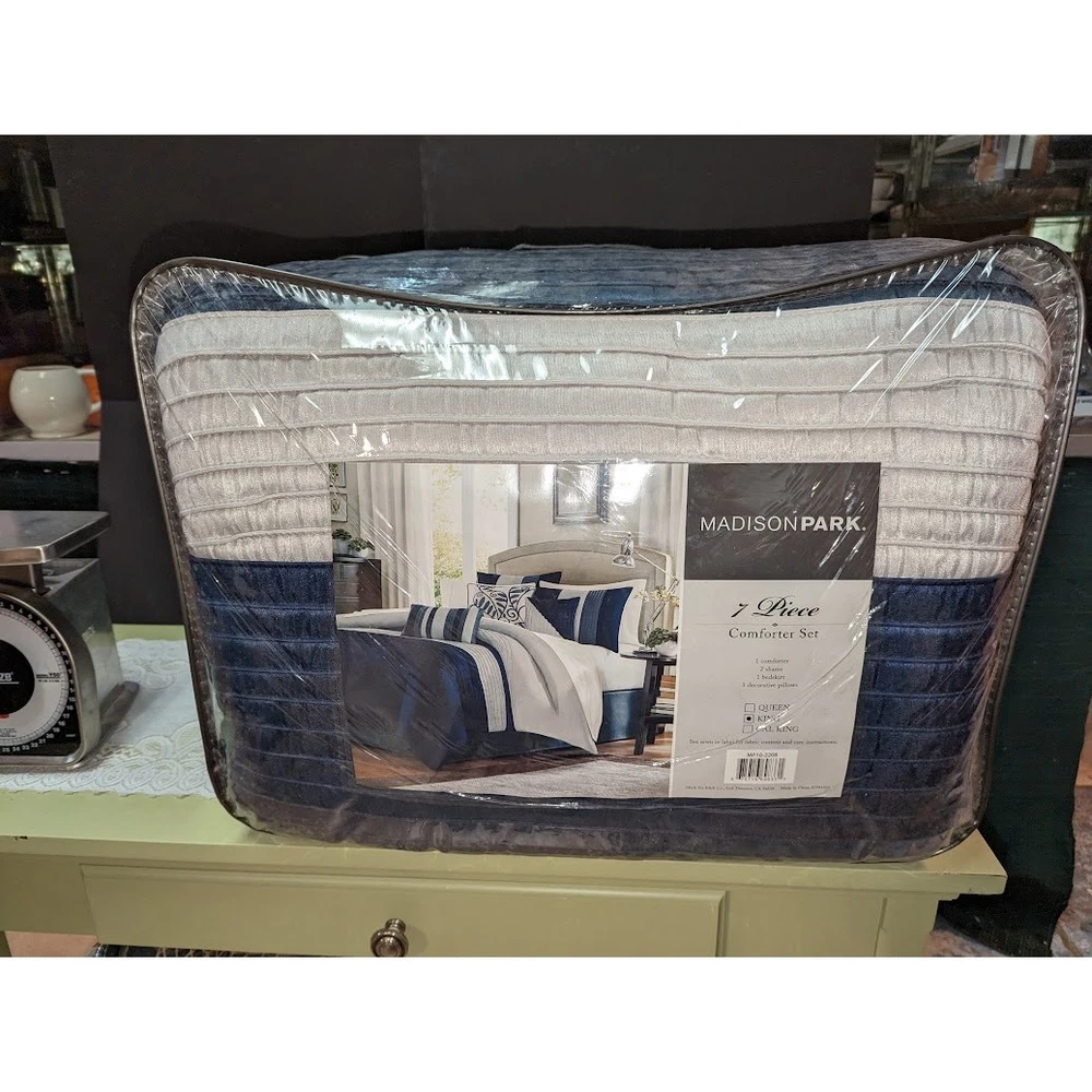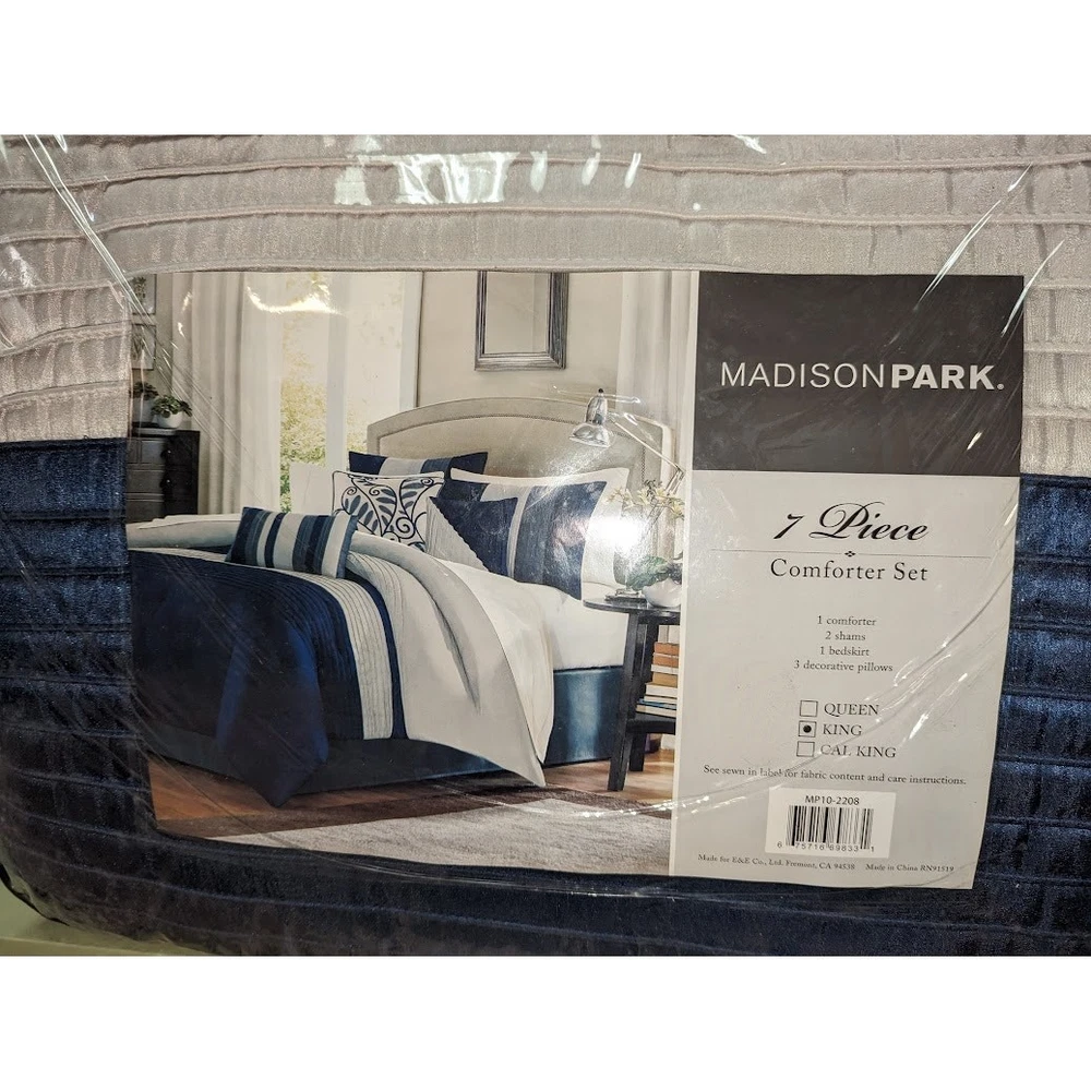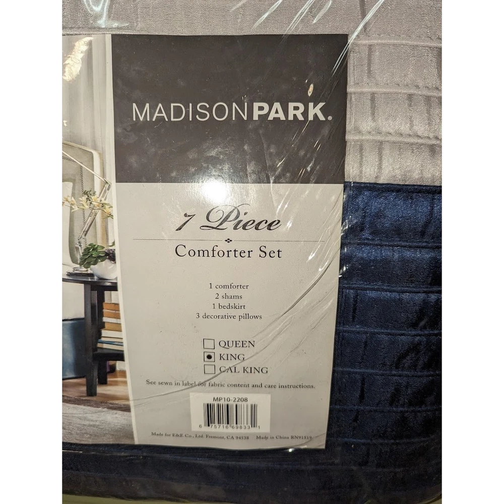 <![CDATA[<div>Madison Park Amherst Faux Silk Comforter Set-Casual Contemporary Design King. 100% Polyester The Amherst bed set is where casual meets contemporary showcasing clean aesthetic design to easily match your current décor. Set includes: 1 Comforter:104x92", 1 Bedskirt:78x80+15",3 Dec Pillows:18x18"/16x16"/12x20",2 King Shams:20x36" Care instructions: Machine wash, gentle cycle and separately. Tumble dry low. Spot clean decorative pillows.