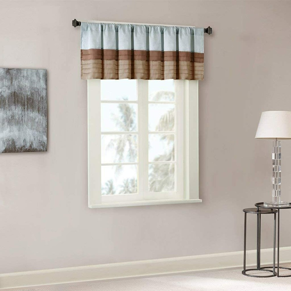 Madison Park Amherst Polyoni Rod Pocket Valances for Windows , 50X18" , Blue 710. This is an open box item. It looks to be in new condition. NEW & TRENDY - Give your home a decorator’s touch with the Madison Park Amherst window curtain valance. Made from a faux silk fabric, this elegant window valance features multi color blocks with pintuck details. The luxurious sheen provides a touch of sophistication to your decor. For added sophistication, it comes with back tab rod pocket to fit curtain rods up to 1.25 inch in diameter. Complete the collection with coordinating window curtains and bedding set, each sold separately. PRIVACY - The living room curtain valances come with back lining for added privacy and better drapability. It also increases its ability to dim outside light coming in creating more cozy ambiance BACK TAB POCKET - This elegant small kitchen window curtain features a back tab rod pocket to conceal/cover the curtain rod creating a more professional tailor look; the rod pocket can fit rods up to 1.25 inch in diameter MEASUREMENT - 1 Window Valance: 50"W x 18"L CARE - Machine wash cold on gentle cycle, tumble dry on low heat, wash alone, do not bleach
