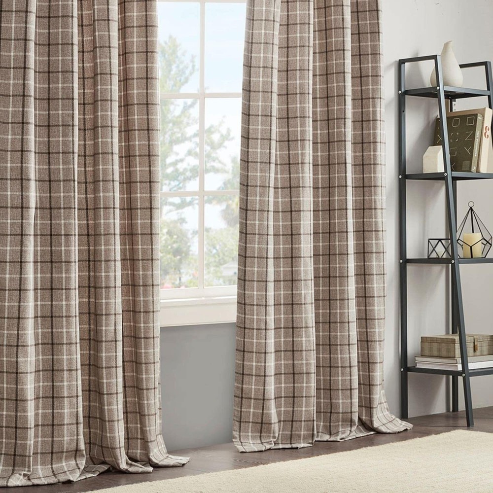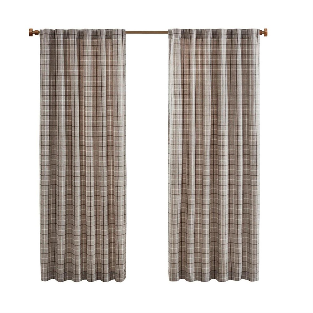 The Anaheim Plaid Rod Pocket and Back Tab Panel with Fleece Lining is an effortlessly stylish and casual addition to your home decor, perfect for creating a cozy cabin feel. It features a heavyweight base fabric adorned with a yarn-dyed neutral green plaid pattern that exudes warmth and comfort. An added bonus is the unique fleece lining on the back, providing extra privacy and thermal insulation, while still allowing natural sunlight to filter in and warm your space. This curtain can be easily hung using its rod pocket top or back tabs for a more custom look, and is designed to fit standard rods of up to 1.25" diameter. The panel comes in lengths of 84” and 95”, sold separately for convenience, and is machine washable for easy maintenance. For a complete look, two panels are recommended for each standard size window. Lodge Styling - The Anaheim Plaid Leather-Like Tab Top SINGLE-PANEL with Fleece Lining offers a stylish and casual cabin update to your home décor High Quality - A yarn-dyed natural-hued plaid pattern adorns the heavyweight base fabric for a warm and cozy look Thermal Insulated - The added fleece lining on the back provides more privacy and quality thermal insulation, while still letting the natural sunlight into warm your home Measurement - 1 Panel: 50"W x 84"L. As shown in image - Need to purchase 2 curtain panels for each window for standard coverage Care Instructions: Machine Washable