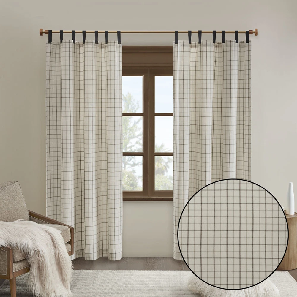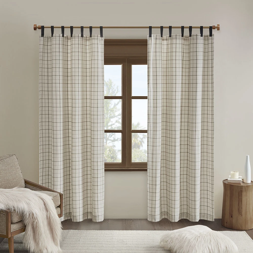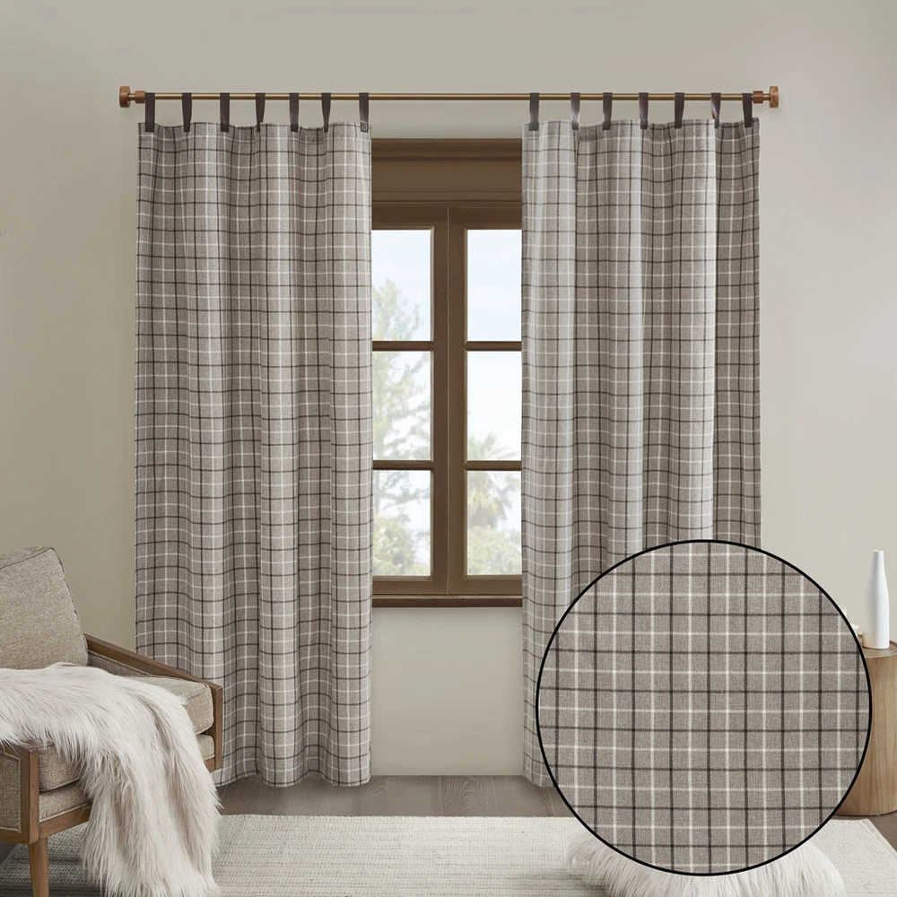 Store Categories Store Categories Bedding Comforters Decorative Pillows Duvet Covers Quilts & Coverlets Sheets Blankets & Throws Mattress Pads Pillows Home Decor Window Treatments Wall Art Home Accents Furniture Beds Dining Seating Ottomans & Benches Accent Chairs Accent Tables Dining Tables Sofas Bath Bath Robes Shower Curtains Towels Bath Rugs Bath Accessories Apparel Pajama Sets Nightgowns Rugs Rugs & Carpets Lighting Lamp Pendant Other Product Overview Details DESCRIPTION The Madison Park Anaheim Plaid Faux Leather Tab Top Panel with Fleece Lining brings a stylish, rustic charm to your living space. Its rich brown plaid pattern on heavyweight fabric creates a cozy ambiance while the brown faux leather tab top adds a distinctive decorator's flair. An added fleece lining enhances privacy and thermal insulation, without blocking natural sunlight. Available in 50" W and 84” L, these machine-washable panels are sold individually. For standard size windows, two panels are recommended. FEATURES • Faux leather tab top yarn dyed plaid weave window curtain panels • Heavy weight and warm quality base fabric for cold weather curtains • Added unique fleece lining for thermal insulation, keeping warmth in during winter and heat out during summer • Light filtering panel with privacy • Faux leather dark brown tab top finish for unique decorator's touch • Panels are sold individually and measure 50" W, available in 84 or 95 inches length • Need to purchase two panels for each window • Machine washable MATERIAL 100% polyester CARE INSTRUCTIONS Machine Washable Available Sizes (In Inches): Panel measures: (50"W x 84"L) Bedding Comforters Decorative Pillows Duvet Covers Quilts & Coverlets Sheets Blankets & Throws Mattress Pads Pillows Home Decor Window Treatments Wall Art Home Accents Furniture Beds Dining Seating Ottomans & Benches Accent Chairs Accent Tables Dining Tables Sofas Bath Bath Robes Shower Curtains Towels Bath Rugs Bath Accessories Rugs Rugs & Carpets Lighting Lamp Pendant Product Overview Product Details DESCRIPTION The Madison Park Anaheim Plaid Faux Leather Tab Top Panel with Fleece Lining brings a stylish, rustic charm to your living space. Its rich brown plaid pattern on heavyweight fabric creates a cozy ambiance while the brown faux leather tab top adds a distinctive decorator's flair. An added fleece lining enhances privacy and thermal insulation, without blocking natural sunlight. Available in 50" W and 84” L, these machine-washable panels are sold individually. For standard size windows, two panels are recommended. FEATURES • Faux leather tab top yarn dyed plaid weave window curtain panels • Heavy weight and warm quality base fabric for cold weather curtains • Added unique fleece lining for thermal insulation, keeping warmth in during winter and heat out during summer • Light filtering panel with privacy • Faux leather dark brown tab top finish for unique decorator's touch • Panels are sold individually and measure 50" W, available in 84 or 95 inches length • Need to purchase two panels for each window • Machine washable MATERIAL 100% polyester CARE INSTRUCTIONS Machine Washable Available Sizes (In Inches): Panel measures: (50"W x 84"L)
