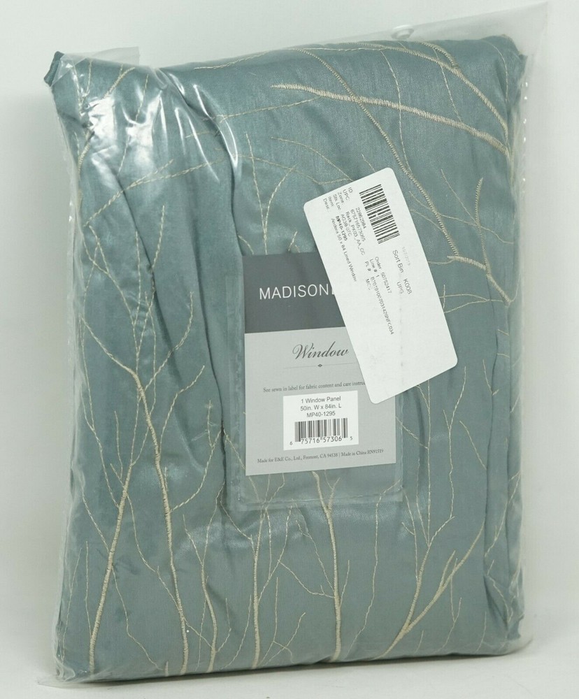 Brand New - Refolded Color: Blue Size: 50" x 84" Make a stylish statement with the Andora Lined Window Panel form Madison Park. The branches in this pattern grow from the bottom to create the illusion one is gazing about the tree tops. This updated design is embroidered on faux silk, while the panels are lined to keep out additional light, increase privacy and add fullness to the appearance of the window treatment. Hang on a rod pocket for a casual look or by using the back tabs for an updated, tailored look. ** Dimensions: 50" x 84" ** Fits up to 1.25" diameter rod ** Rod pocket, Back tabs ** Panels are lined ** Polyester ** Machine washable ** Imported