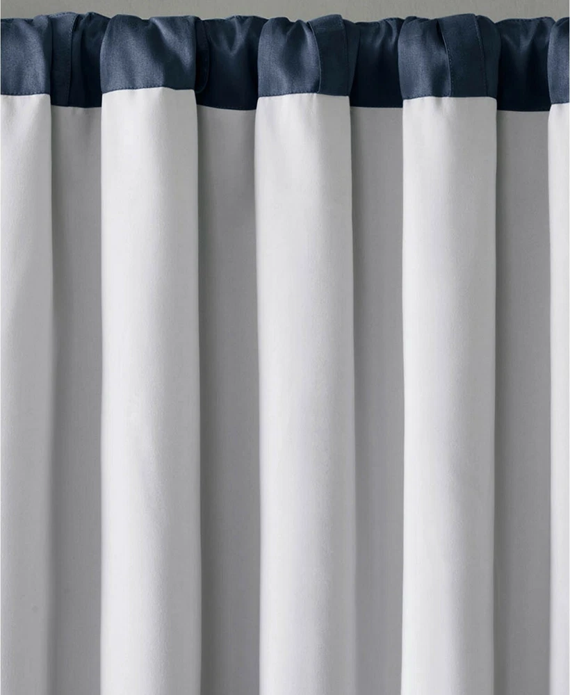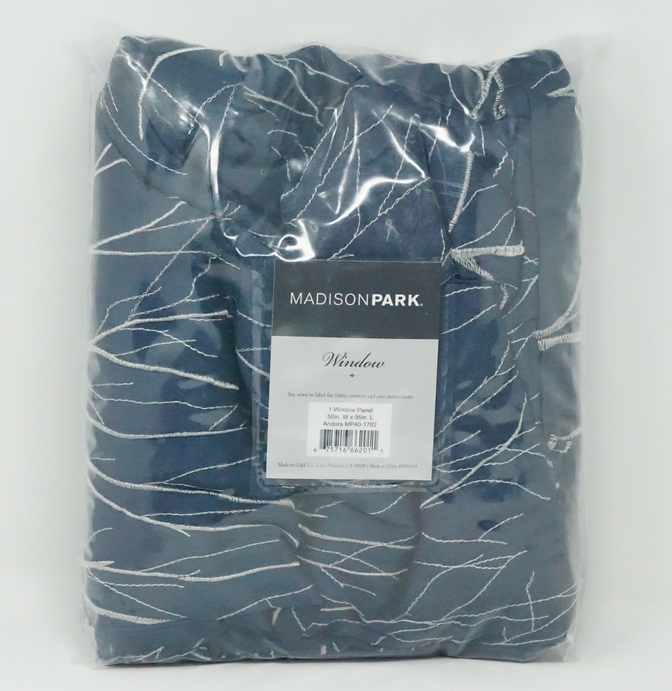 Brand New - Refolded Color: Navy Size: 50" x 95" Make a stylish statement with the Andora curtains from Madison Park. The branches in this pattern grow from the bottom to create the illusion one is gazing about the tree tops. This updated design is embroidered on faux silk, and the panels are lined to keep out additional light, increase privacy and add fullness to the appearance of the window treatment. Hang on the rod pocket for a casual look or by using the back tabs for an updated, tailored look. Dimensions: 50" x 95" Fits up to 1.25" diameter curtain rod Rod pocket and back tab hanging options Includes: 1 curtain panel Polyester Machine washable Imported