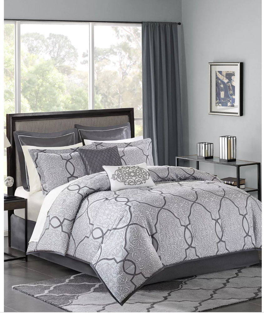 Madison Park Anouk 12-PC. Jacquard Comforter Set, Silver, King Madison Park Anouk 12-PC. Jacquard Comforter Set, Silver, King Madison Park Anouk 12-PC. Jacquard Comforter Set, Silver, King Madison Park Anouk 12-PC. Jacquard Comforter Set, Silver, King Madison Park Anouk 12-PC. Jacquard Comforter Set, Silver, King Item Notes: The Madison Park Anouk comforter set provides a rich update to your master bedroom. Luxury, traditional style 12-piece jacquard comforter set with one sheet set included Geometric motif damask design in woven jacquard fabric Embroidery and fabric manipulation details on decorative pillows Soft brushed polyester on solid color comforter reverse Cotton sheet set included Fitted sheet fits up to 16 inches mattress depth Hypoallergenic polyester filling in the comforter and decorative pillows Items in this set may come in rolled or compressed packaging and will need to be fluffed up QUEEN 12-PIECE SET 90 X 92 comforter Queen fitted sheet: 60 x 80, fits most mattresses up to 16 deep Flat sheet: 90 x 102 2 standard shams: 20 x 26 2 Euro shams: 26 x 26 2 standard pillow cases: 20 x 32 Bedskirt: 60 x 80 +15 drop Decorative pillow: 18 X 18 Oblong pillow: 12 x 18 KING 12-PIECE SET 106 X 92 comforter King fitted sheet: 78 x 80, fits most mattresses up to 16 deep Flat sheet: 110 x 102 2 king shams: 20 x 36 2 Euro shams: 26 x 26 2 king pillow cases: 20 x 40 Bedskirt: 78 x 80 + 15 drop Decorative pillow: 18 X 18 Oblong pillow: 12 x 18 CAL. KING 12-PIECE SET 106 X 92 comforter King fitted sheet: 72 x 84, fits most mattresses up to 16 deep Flat sheet: 110 x 102 2 king shams: 20 x 36 2 Euro shams: 26 x 26 2 king pillow cases: 20 x 40 Bedskirt: 72 x 84 + 15 drop Decorative pillow: 18 X 18 Oblong pillow: 12 x 18 CONSTRUCTION & CARE Polyester Machine wash Imported Color: Silver. Gender: unisex. Age Group: adult. Due to variances in monitor color, and lighting, the color of some items may differ slightly from the photographs About us: Vanessa Jane is a family-owned business based in Indiana. We sell only authentic merchandise from brand new to uséd, and list new inventory daily. Make sure to put us on your favorites to see what's new each day! We source all of our inventory from reputable sales channels, including: Macy's Amazon Walmart Home Depot Office Depot Lowes Build.com And many more Box E110 (King/Silver-1) Item Notes: The Madison Park Anouk comforter set provides a rich update to your master bedroom. Luxury, traditional style 12-piece jacquard comforter set with one sheet set included Geometric motif damask design in woven jacquard fabric Embroidery and fabric manipulation details on decorative pillows Soft brushed polyester on solid color comforter reverse Cotton sheet set included Fitted sheet fits up to 16 inches mattress depth Hypoallergenic polyester filling in the comforter and decorative pillows Items in this set may come in rolled or compressed packaging and will need to be fluffed up QUEEN 12-PIECE SET 90 X 92 comforter Queen fitted sheet: 60 x 80, fits most mattresses up to 16 deep Flat sheet: 90 x 102 2 standard shams: 20 x 26 2 Euro shams: 26 x 26 2 standard pillow cases: 20 x 32 Bedskirt: 60 x 80 +15 drop Decorative pillow: 18 X 18 Oblong pillow: 12 x 18 KING 12-PIECE SET 106 X 92 comforter King fitted sheet: 78 x 80, fits most mattresses up to 16 deep Flat sheet: 110 x 102 2 king shams: 20 x 36 2 Euro shams: 26 x 26 2 king pillow cases: 20 x 40 Bedskirt: 78 x 80 + 15 drop Decorative pillow: 18 X 18 Oblong pillow: 12 x 18 CAL. KING 12-PIECE SET 106 X 92 comforter King fitted sheet: 72 x 84, fits most mattresses up to 16 deep Flat sheet: 110 x 102 2 king shams: 20 x 36 2 Euro shams: 26 x 26 2 king pillow cases: 20 x 40 Bedskirt: 72 x 84 + 15 drop Decorative pillow: 18 X 18 Oblong pillow: 12 x 18 CONSTRUCTION & CARE Polyester Machine wash Imported Color: Silver. Gender: unisex. Age Group: adult. Due to variances in monitor color, and lighting, the color of some items may differ slightly from the photographs About us: Vanessa Jane is a family-owned business based in Indiana. We sell only authentic merchandise from brand new to uséd, and list new inventory daily. Make sure to put us on your favorites to see what's new each day! We source all of our inventory from reputable sales channels, including: Macy's Amazon Walmart Home Depot Office Depot Lowes Build.com And many more Box E110 (King/Silver-1)eBay integration by Madison Park Anouk 12-PC. Jacquard Comforter Set, Silver, King Item Notes: The Madison Park Anouk comforter set provides a rich update to your master bedroom. Luxury, traditional style 12-piece jacquard comforter set with one sheet set included Geometric motif damask design in woven jacquard fabric Embroidery and fabric manipulation details on decorative pillows Soft brushed polyester on solid color comforter reverse Cotton sheet set included Fitted sheet fits up to 16 inches mattress depth Hypoallergenic polyester filling in the comforter and decorative pillows Items in this set may come in rolled or compressed packaging and will need to be fluffed up QUEEN 12-PIECE SET 90 X 92 comforter Queen fitted sheet: 60 x 80, fits most mattresses up to 16 deep Flat sheet: 90 x 102 2 standard shams: 20 x 26 2 Euro shams: 26 x 26 2 standard pillow cases: 20 x 32 Bedskirt: 60 x 80 +15 drop Decorative pillow: 18 X 18 Oblong pillow: 12 x 18 KING 12-PIECE SET 106 X 92 comforter King fitted sheet: 78 x 80, fits most mattresses up to 16 deep Flat sheet: 110 x 102 2 king shams: 20 x 36 2 Euro shams: 26 x 26 2 king pillow cases: 20 x 40 Bedskirt: 78 x 80 + 15 drop Decorative pillow: 18 X 18 Oblong pillow: 12 x 18 CAL. KING 12-PIECE SET 106 X 92 comforter King fitted sheet: 72 x 84, fits most mattresses up to 16 deep Flat sheet: 110 x 102 2 king shams: 20 x 36 2 Euro shams: 26 x 26 2 king pillow cases: 20 x 40 Bedskirt: 72 x 84 + 15 drop Decorative pillow: 18 X 18 Oblong pillow: 12 x 18 CONSTRUCTION & CARE Polyester Machine wash Imported Color: Silver. Gender: unisex. Age Gro