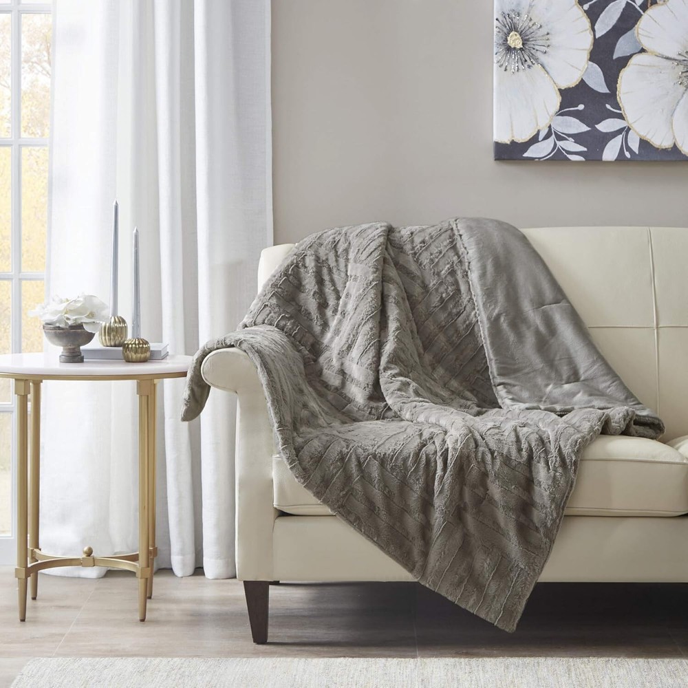 ***Item Description:*** Polyester Ultra plush fabric is incredibly soft and features a checkboard design for added texture and dimension Set Include: 1 Throw: 50x60" Material Details: Face: 280gsm long fur, solid, 100% polyester; Reverse: 180gsm mink, solid Machine wash cold, gentle cycle and separately. Do not bleach, tumble dry low. Remove promptly. Do not iron