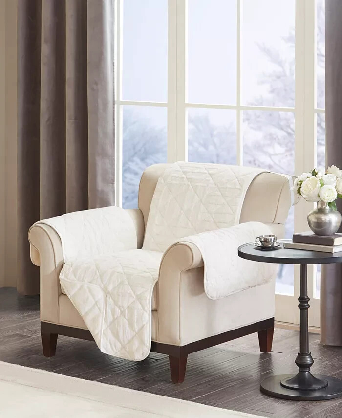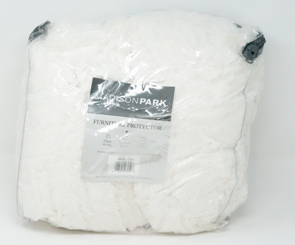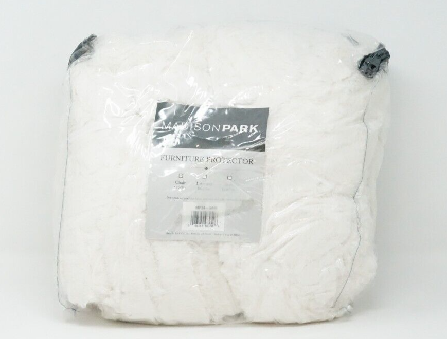 Brand New - Refolded Color: Ivory Size: 65" x 75" + 22" arms Protect your seating while bringing a luxe look and feel to any setting with this Arctic chair protector from Madison Park, featuring exceptionally soft faux fur, crisp checkerboard quilting and elastic straps for easy adjustments and a secure fit. Dimensions: 65" x 75" + 22" arms Faux-fur face and reverse: polyester; bonded polyester fiber fill Machine washable Imported