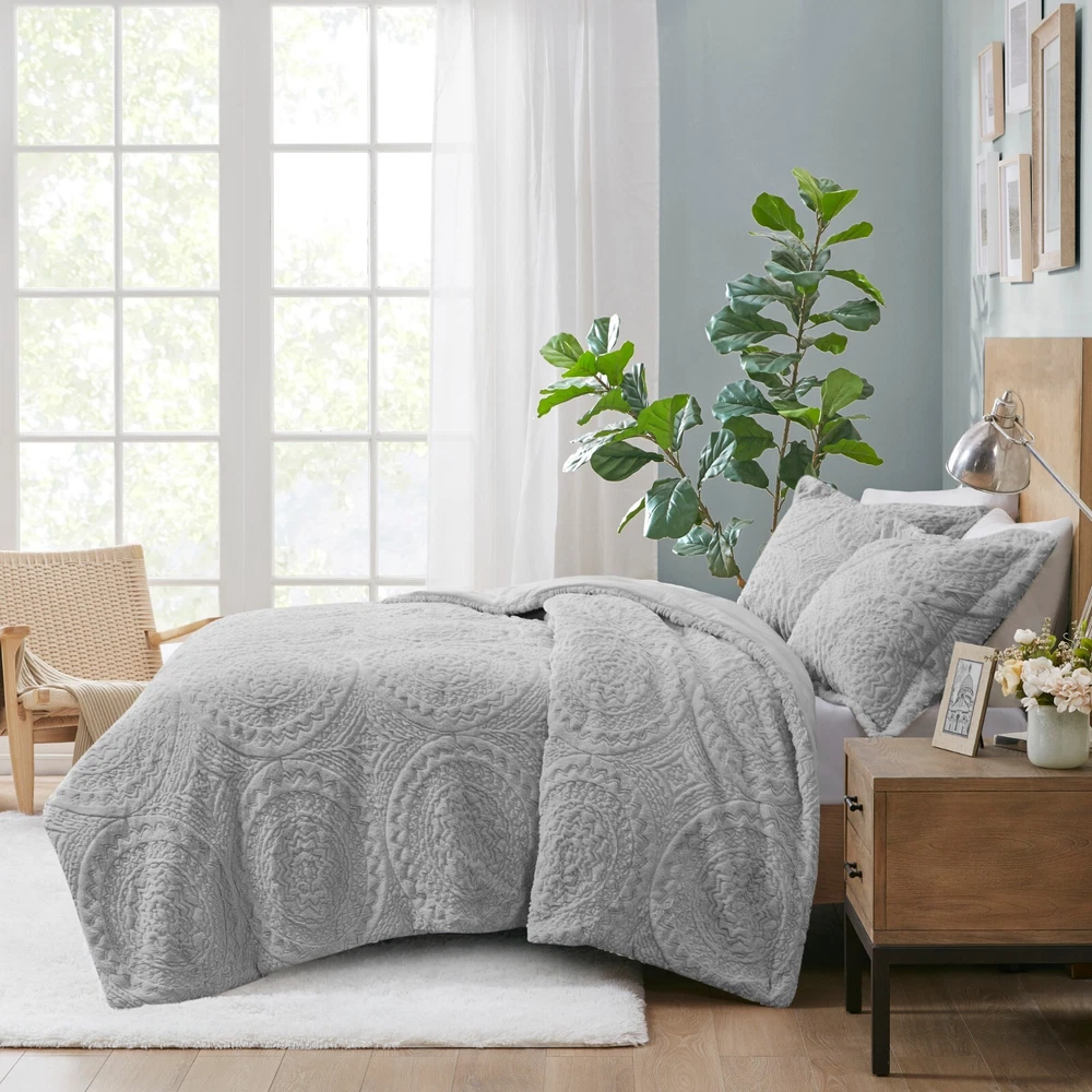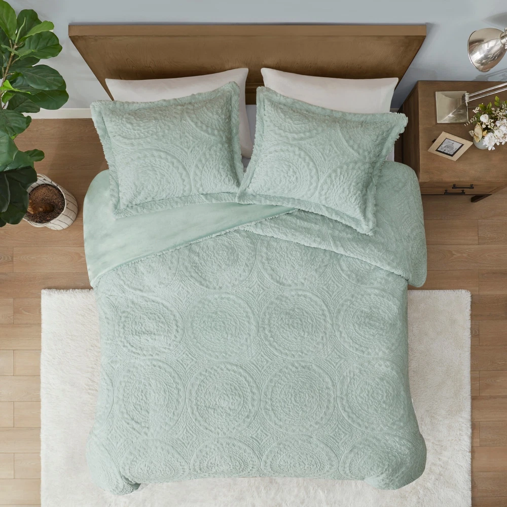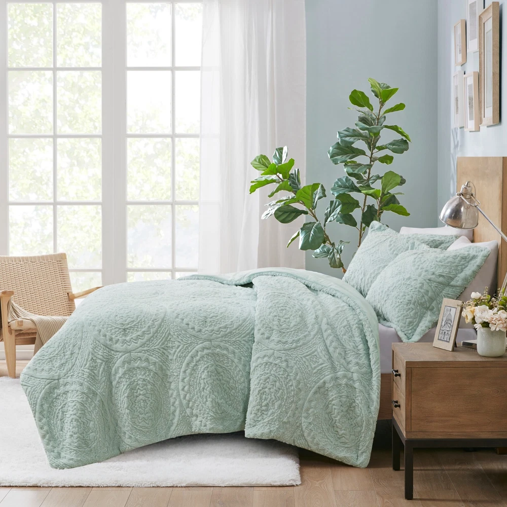 Store Categories Store Categories Bedding Comforters Decorative Pillows Duvet Covers Quilts & Coverlets Sheets Blankets & Throws Mattress Pads Pillows Home Decor Window Treatments Wall Art Home Accents Furniture Beds Dining Seating Ottomans & Benches Accent Chairs Accent Tables Dining Tables Sofas Bath Bath Robes Shower Curtains Towels Bath Rugs Bath Accessories Apparel Pajama Sets Nightgowns Rugs Rugs & Carpets Lighting Lamp Pendant Other Product Overview Details DESCRIPTION Transform your bedroom with the elegant style of Madison Park’s Arya Medallion Faux Fur Comforter Mini Set. The rich aqua comforter and matching sham feature an embroidered medallion design on the ultra-soft plush fabric. Machine washable for easy care, this comforter set makes a stunning addition to your home. FEATURES • Faux fur comforter features an embroidered medallion pattern • Reverse is a soft faux mink • Hypoallergenic fill for comfort and wellness • Set includes comforter and two matching shams (1 in Twin) • Machine wash separately in large capacity washer with cold water on gentle cycle, do not use fabric softener or bleach • Tumble dry separately in large capacity dryer on low heat • Minor shedding is expected with faux fur material and should subside after 3-4 washes MATERIAL Comforter: 100% Polyester Embroidered Long fur on face 100% Polyester Solid Mink on Back Poly Fiber Filling Jump Tack Stitched w/ Knife Edge Sham: 100%polyester Embroidered Long fur on face 100%polyester Solid Mink on Back Zipper on the back open W/ 2" Flange Available Sizes: Twin Comforter Set includes: 1 Comforter: 63"x86" 1 Standard Sham: 20"x26" + 2" Full/Queen Comforter Set includes: 1 Comforter: 90"x90" 2 Standard Shams: 20"x26" + 2" King/California King Comforter Set includes: 1 Comforter: 104"x90" 2 King Shams: 20"x36" + 2" Bedding Comforters Decorative Pillows Duvet Covers Quilts & Coverlets Sheets Blankets & Throws Mattress Pads Pillows Home Decor Window Treatments Wall Art Home Accents Furniture Beds Dining Seating Ottomans & Benches Accent Chairs Accent Tables Dining Tables Sofas Bath Bath Robes Shower Curtains Towels Bath Rugs Bath Accessories Rugs Rugs & Carpets Lighting Lamp Pendant Product Overview Product Details DESCRIPTION Transform your bedroom with the elegant style of Madison Park’s Arya Medallion Faux Fur Comforter Mini Set. The rich aqua comforter and matching sham feature an embroidered medallion design on the ultra-soft plush fabric. Machine washable for easy care, this comforter set makes a stunning addition to your home. FEATURES • Faux fur comforter features an embroidered medallion pattern • Reverse is a soft faux mink • Hypoallergenic fill for comfort and wellness • Set includes comforter and two matching shams (1 in Twin) • Machine wash separately in large capacity washer with cold water on gentle cycle, do not use fabric softener or bleach • Tumble dry separately in large capacity dryer on low heat • Minor shedding is expected with faux fur material and should subside after 3-4 washes MATERIAL Comforter: 100% Polyester Embroidered Long fur on face 100% Polyester Solid Mink on Back Poly Fiber Filling Jump Tack Stitched w/ Knife Edge Sham: 100%polyester Embroidered Long fur on face 100%polyester Solid Mink on Back Zipper on the back open W/ 2" Flange Available Sizes: Twin Comforter Set includes: 1 Comforter: 63"x86" 1 Standard Sham: 20"x26" + 2" Full/Queen Comforter Set includes: 1 Comforter: 90"x90" 2 Standard Shams: 20"x26" + 2" King/California King Comforter Set includes: 1 Comforter: 104"x90" 2 King Shams: 20"x36" + 2"