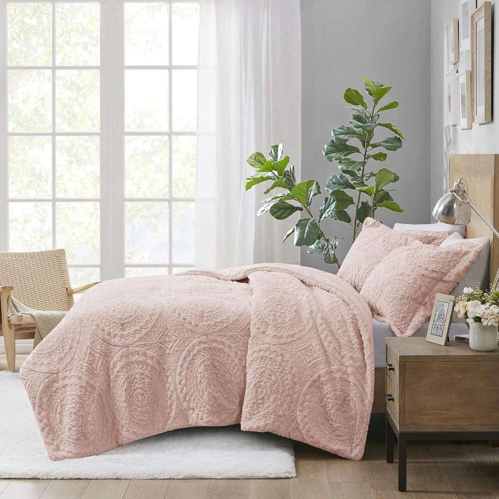 This comforter set is pure luxury! The ultra-plush fabric feels amazing against the skin, and the delicate blush color with embroidered medallion adds such elegant charm. It's surprisingly lightweight yet warm, perfect for year-round comfort. I love how soft and cozy it makes my bed feel—like sleeping in a high-end hotel every night. The quality stitching holds up beautifully in the wash too. It instantly elevated my bedroom decor with its sophisticated style. Definitely worth every penny for the comfort and beauty it brings!