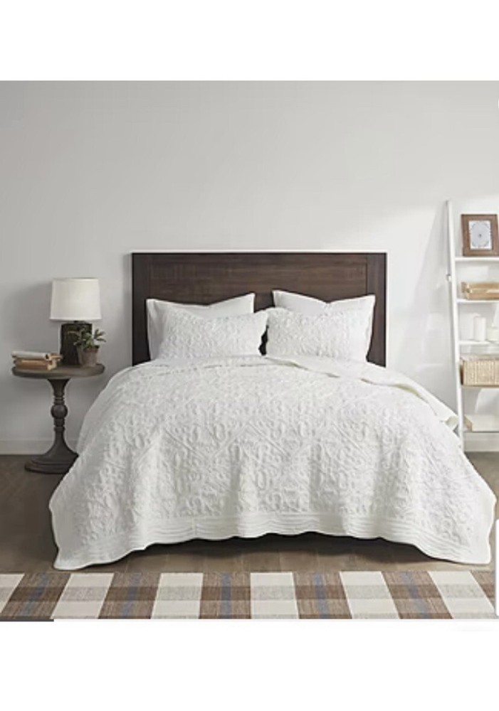 Madison Park Aster 3 Piece Embroidered Faux Fur Coverlet Set ivory bedding....