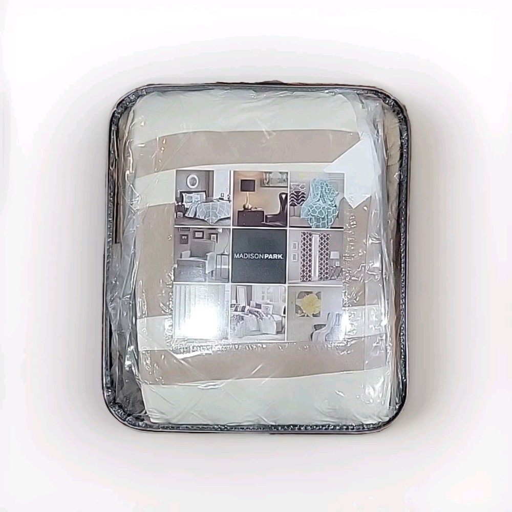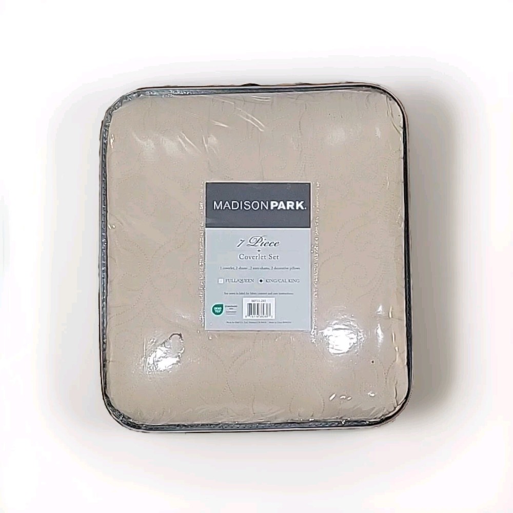 Elevate your bedroom decor with this Madison Park Attingham reversible quilt set, featuring a king-sized coverlet and a 28cm drop length. The set includes a pieced pattern with a beige color, made of 100% polyester that is machine washable. The quilted and embroidered features add a modern touch to the plain theme, making it suitable for any bedroom style. This coverlet set is perfect for all seasons, with its breathable and insulated design. The zip closure type ensures easy installation, and the set comes with care instructions for easy maintenance. Add this Madison Park Attingham reversible quilt set to your bedding collection today!