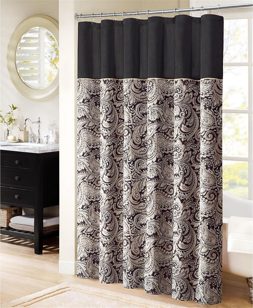 Description Condition: Open Box Color: Black Product details The Madison Park Aubrey Polyester Jacquard Shower Curtain creates a sophisticated modern look in your bathroom. The pieced design flaunts a beautiful woven jacquard in an updated paisley motif with a large solid stripe at the top of the shower curtain. This jacquard shower curtain is machine washable for easy care. Various sizes are available to fit any bathroom space. 72" x 72" Shower curtain does not include hooks Polyester Jacquard Dry Clean Imported pmy1122a ( Please contact us for PO Boxes, APO, HI, PR, AK and international shipping) Payment Please make payment within 7 days of auction end. Please note that eBay will automatically open an Unpaid Item Dispute (UPI) if an item is not paid within 14 days. If you have any questions, please contact us. Thank you! Shipping We offer combine shipping. We charge $1 for each additional item.( Applies to domestic orders only ). Please e-mail us when you are ready to checkout as the eBay software does not combine shipping automatically! We ship out 5 days a week ( Monday through Friday ) and we ship within ONE business days of receiving payment. We ship Economy, USPS Priority Mail or Fedex. (International shipping charges are varies due to the different weights and different locations.) Terms of Sale Return Policy Doesn't fit? Just not quite what you thought it would be? Not a problem! Just Return It! We accept returns within 30 days for money back. If you have any questions with your product, please email . Please allow 7 days from receipt of the return for the refund to be completed. If the items are as described buyers are responsible for return shipping cost if you are unsure about the size or items details please contact us before placing order to avoid any possible returns.. Pictures sell! Auctiva offers Free Image Hosting and Editing. 300+ Listing Templates! Auctiva gets you noticed! The complete eBay Selling Solution. Track Page Views With Auctiva's FREE Counter