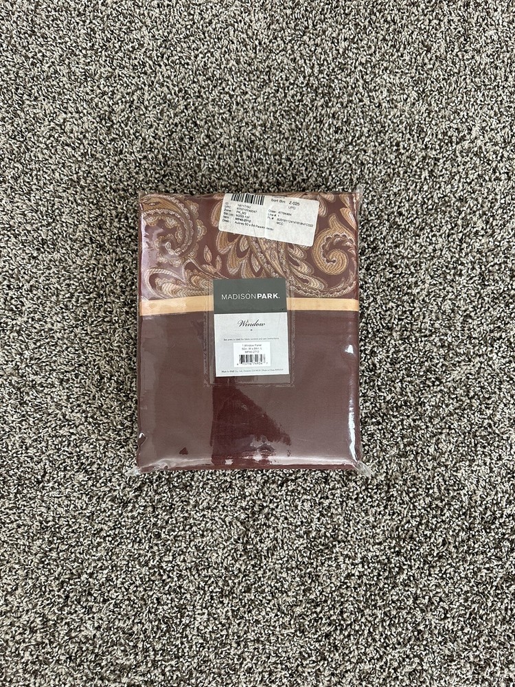 Madison Park Aubrey Faux Silk Paisley Jacquard, 50 in x 84 in, Burgundy, NWT 100% Polyester. Set Includes: 2 window panels. For a luxuriously classic style, our Madison Park Aubrey Window Curtain Pair is the perfect touch to your decor. The window panels are pieced with solid faux silk and beautiful flat piping details in gold, creating an elegant look. Simply hang on rod pocket or back tabs for a tailored finish; fits up to a 1. 25 diameter rod. Care Instructions: Machine washable. Enhance the visual appeal of your room with these beautiful Paisley patterned panels. The Madison Park Aubrey Faux Silk Jacquard curtains in Burgundy color are perfect for any room. Made of high-quality Faux Silk material, these curtains are durable and long-lasting. With a dimension of 50 in x 84 in, they are ideal for indoor use and come with new tags. The panels are perfect for adding a touch of elegance to your windows and making them the centerpiece of your room. Get the Madison Park Aubrey Faux Silk Paisley Jacquard curtains today and enhance your interior decor.