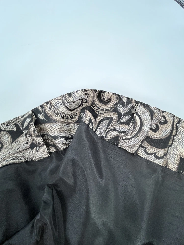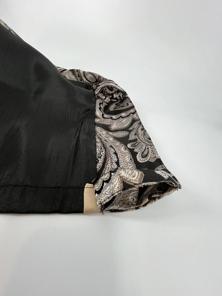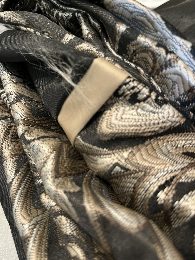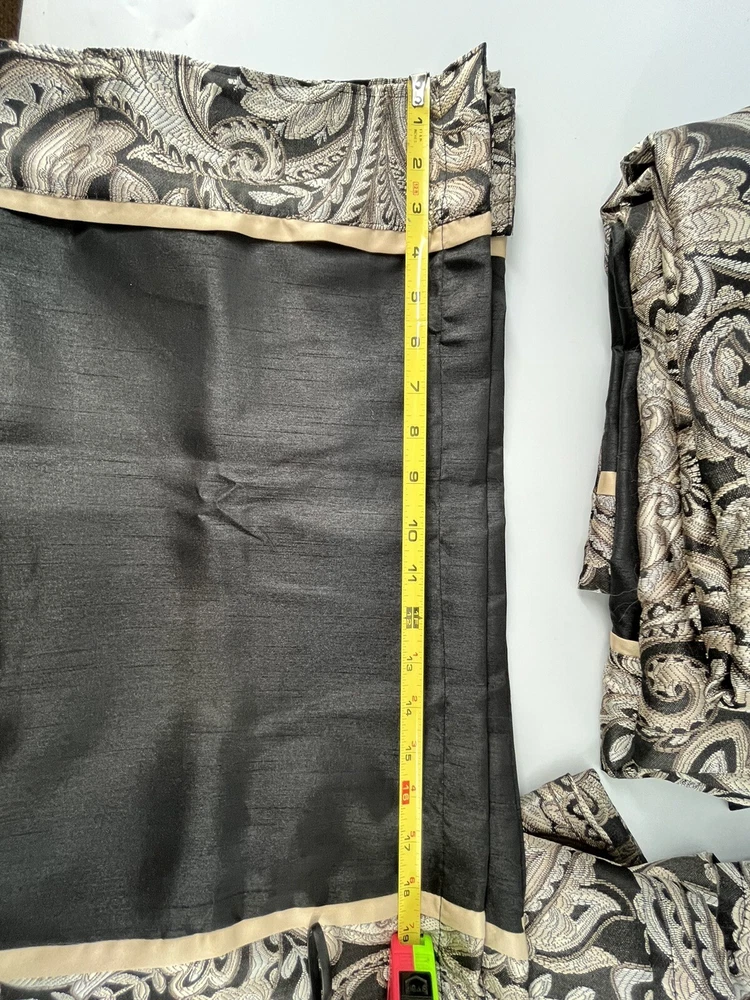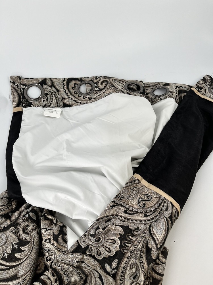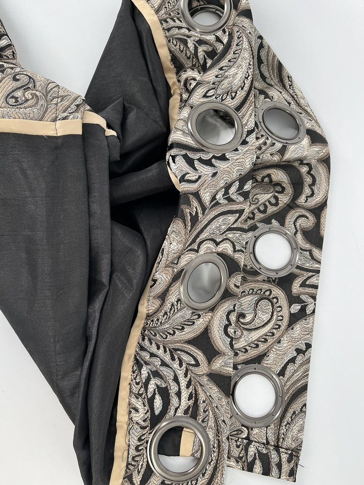 Madison Park Aubrey Faux Silk Paisley (Room Darkening) Curtains, Grommets 50"W x 84"L (set of 2 panels) Black, Gold, Silver, Beige Very Good Condition. May have small snags. NON-Smoking home with pets