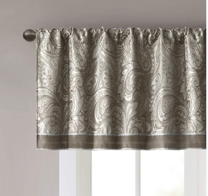 Brand: Madison Park Color: Taupe Valance Material: Polyester Product Dimensions: 18"L x 50"W Opacity: Light-filtering About this item Polyester Imported Paisley jacquard weave design Pieced border detailing Rod pocket top finish 100% polyester, rod pocket 1 Window Valance:50x18" MACHINE WASH COLD. GENTLE CYCLE AND SEPERATELY. DO NOT BLEACH. TUMBLE DRY SLOW, REMOVE PROMPTLY. DO NOT IRON