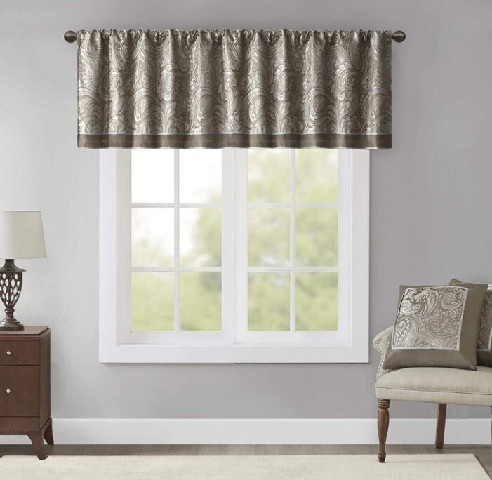 This valance adds instant elegance to any window! The faux silk taupe paisley design is gorgeous, and the jacquard weave gives it a luxurious texture. The light-filtering fabric softens sunlight beautifully while the rod pocket makes installation a breeze. It’s well-made with neat pieced borders and washes easily—just toss it in the machine. Perfect for sprucing up a room without overwhelming it!