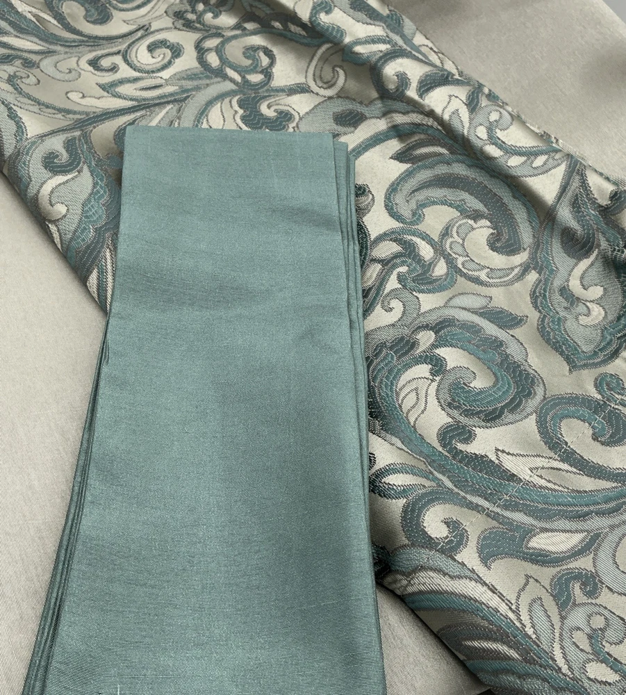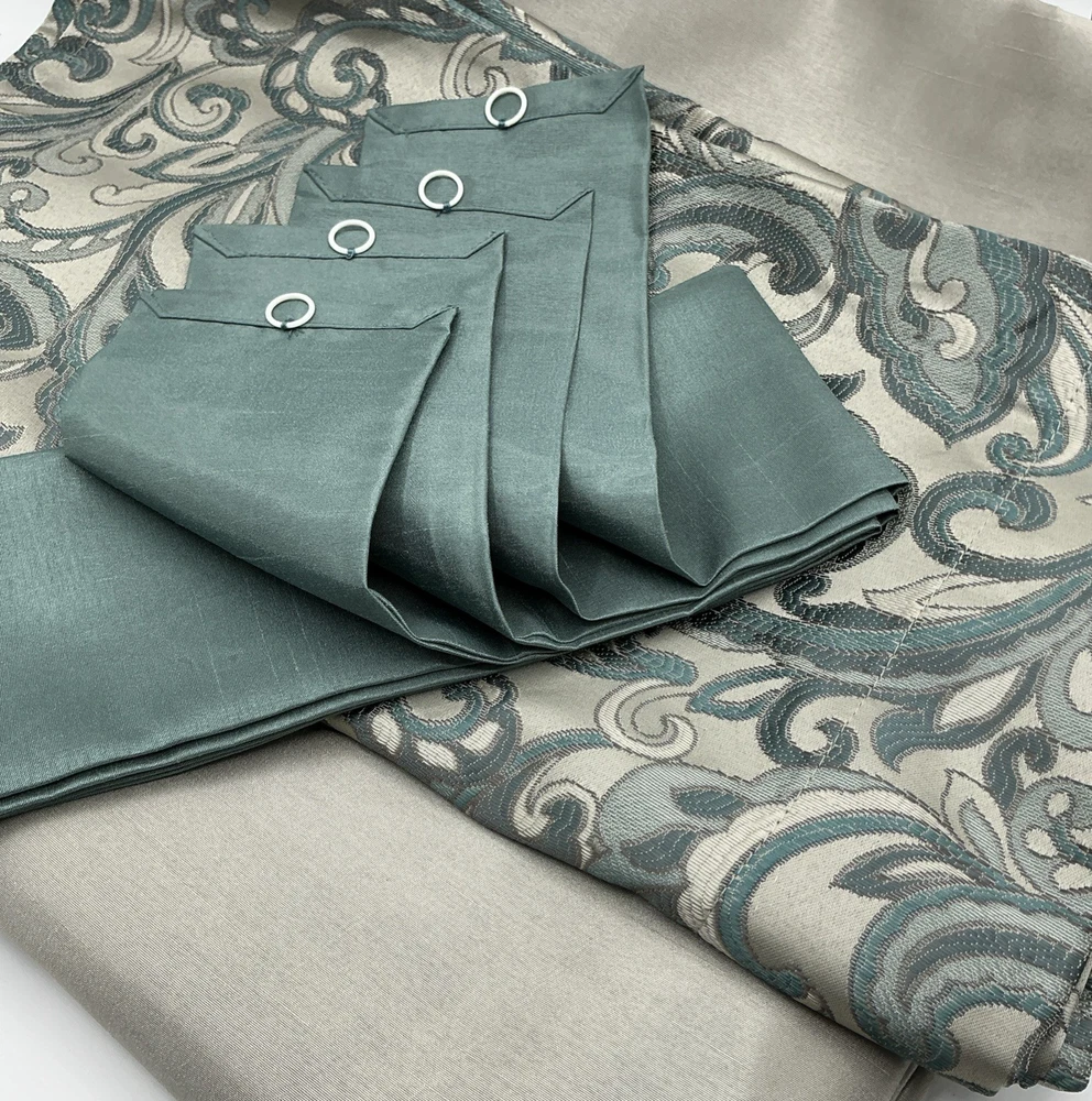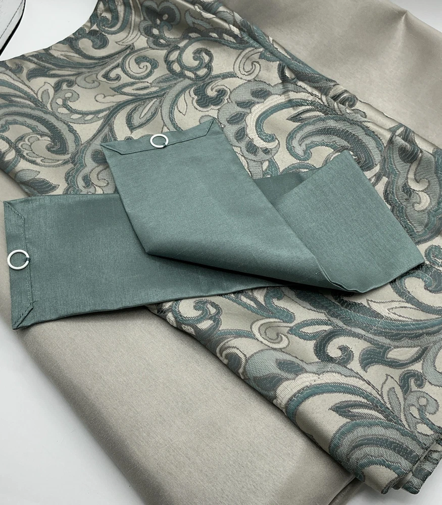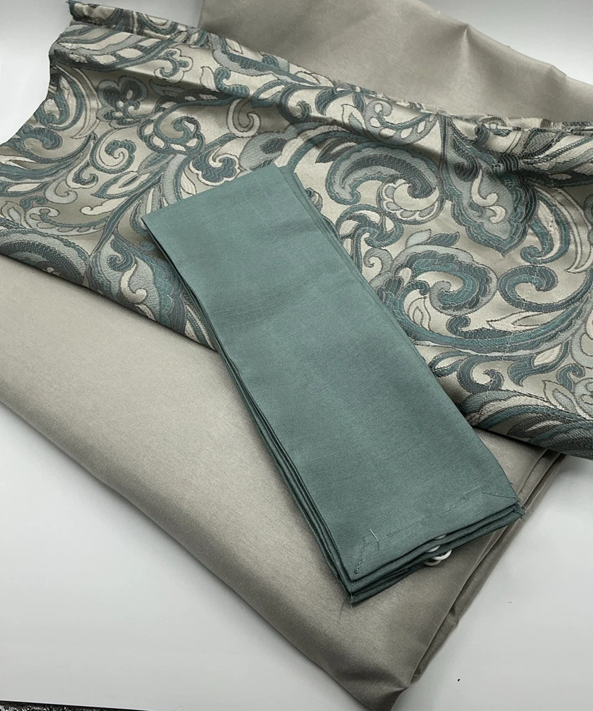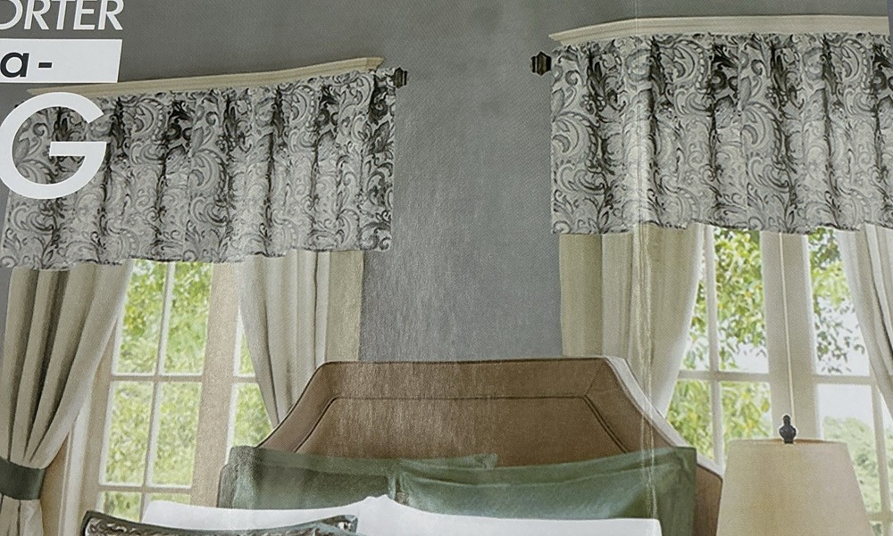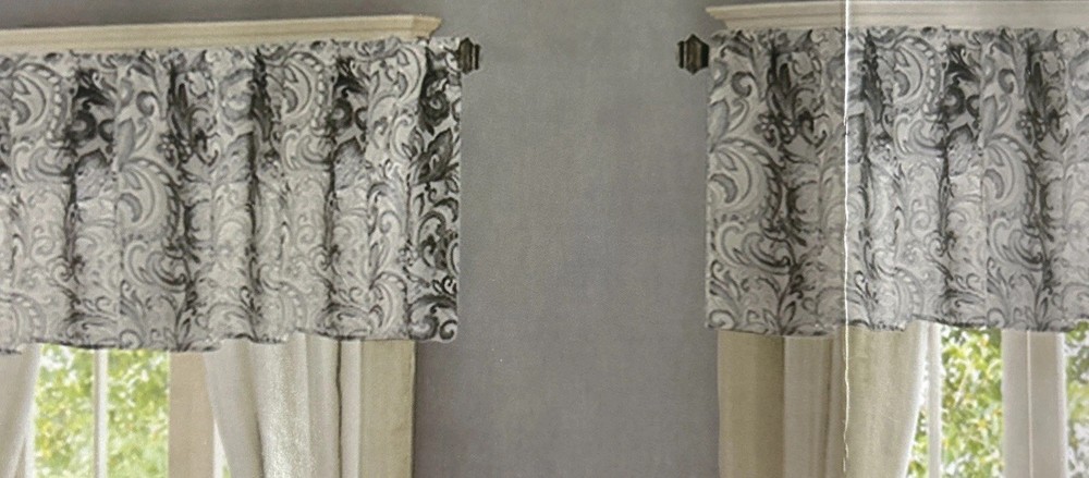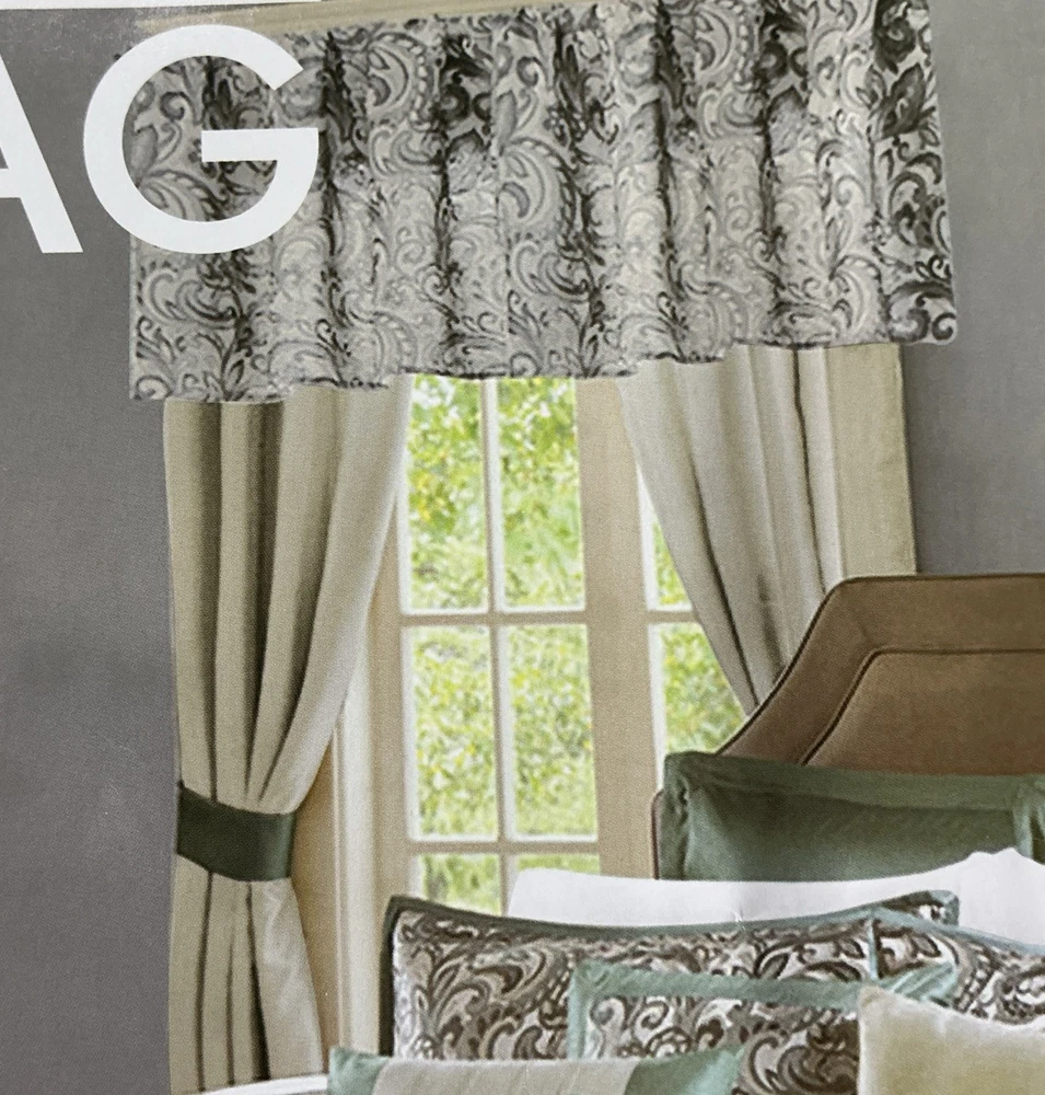 Elevate the look of any room with this Madison Park Aubrey Jacquard Window silver panels, paisley valances, and dark aqua tiebacks. Featuring a beautiful paisley pattern in a multicolor design, these window treatments are perfect for adding a touch of classic style to your home decor. Made from high-quality polyester material, these lightweight window treatments are easy to install with a rod pocket heading and measures 84 inches in length and 45 inches in width. Stock photos were used to show the panels, valances, and tiebacks used together. Not only do these window treatments provide a stylish look, but they also offer light filtering capabilities for added privacy and comfort. Care instructions recommend machine washing for easy maintenance. Perfect for any room in your home, these window treatments are sure to impress. Please check photos for details and exact condition. The items are all brand new.