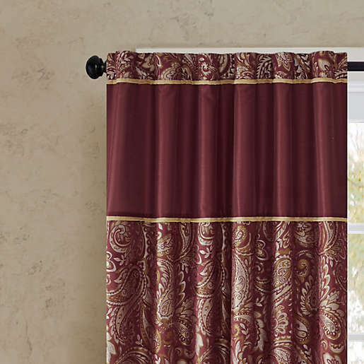 Madison Park Aubrey Paisley 50" x 84" Faux Silk Curtain Set New in Package _________________________________________________________________________________________________ The Madison Park Aubrey Window Curtain Panel Pair features a jacquard weave inspired from an updated paisley motif. It is woven in a beautiful combination of burnt red, gold, and a hint of platinum. The Madison Park Aubrey Window Curtain Panel Pair features a jacquard weave inspired from an updated paisley motif Woven and pieced with faux silk, with gold piping 100% Polyester Machine wash cold Grommet top panel Measures 50" W x 84" L each Fits a rod up to 1.25" diameter Imported _________________________________________________________________________________________________ FEEDBACK Your happiness with the product you receive from us is very important, so please give us positive feedback if all was well with the service and product you received. BUT, if you have any issues, please contact us first so we can work with you to resolve the problem