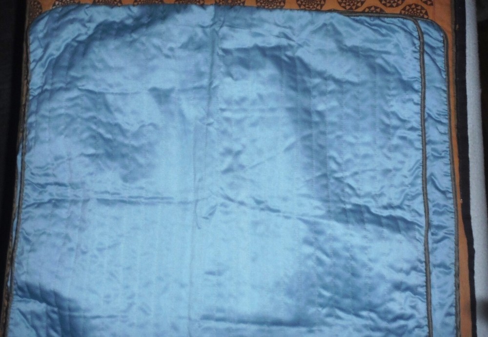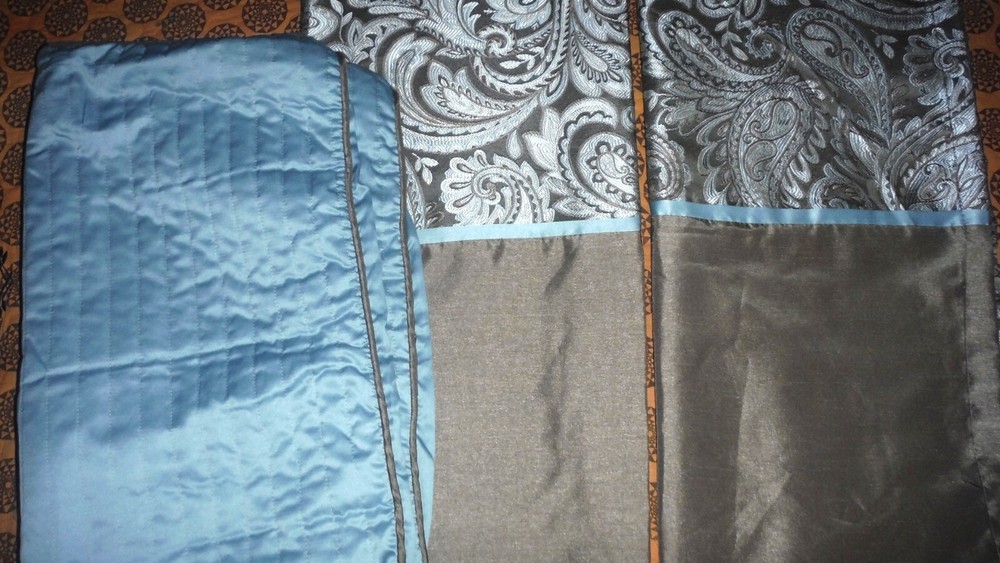Madison Park Aubrey Paisley Jacquard 50" x 84" Faux Silk 2 Curtain Panels and 2 Euro Pillow Covers Excellent condition. The Euro Pillow covers in Blue with Brown accent fabric measure 24" x 24"