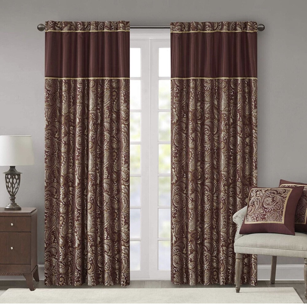 Madison Park Aubrey Silk-Like burgundy Embroidered Curtains Set of 2 Panels.