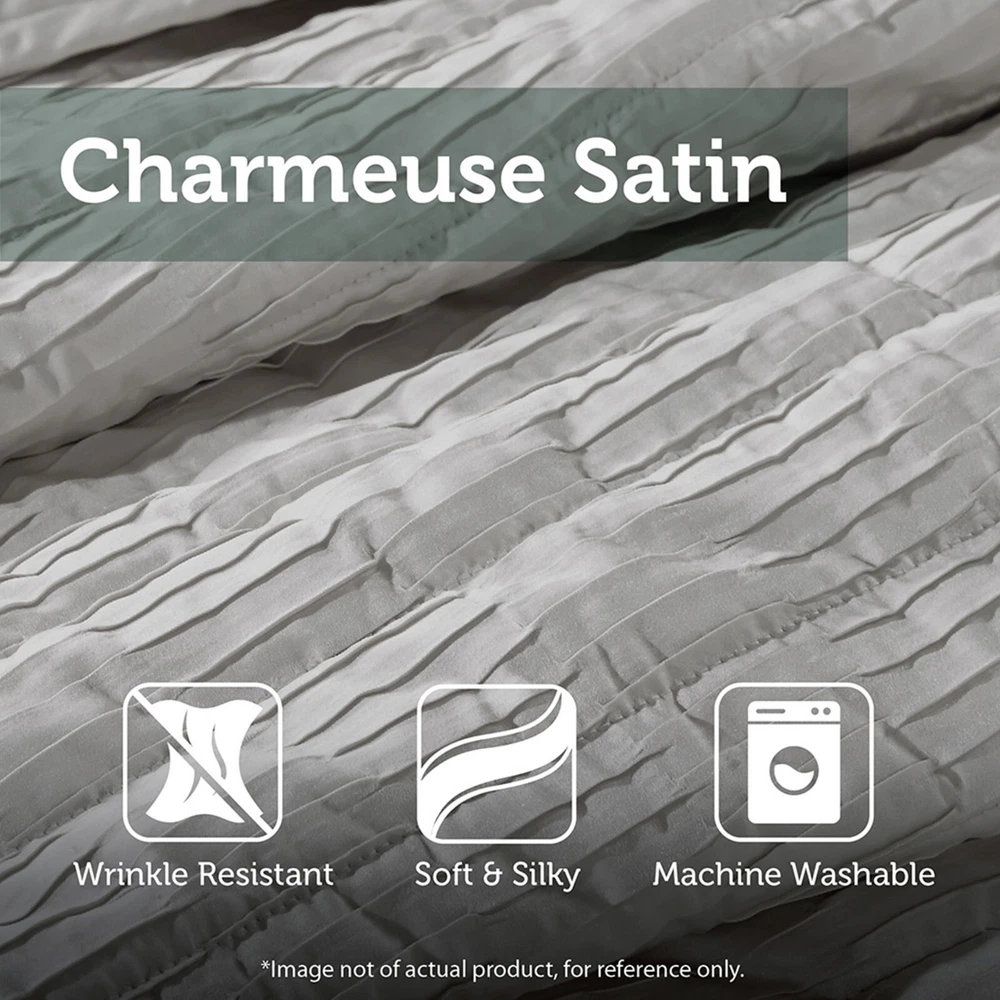 Store Categories Store Categories Bedding Comforters Decorative Pillows Duvet Covers Quilts & Coverlets Sheets Blankets & Throws Mattress Pads Pillows Home Decor Window Treatments Wall Art Home Accents Furniture Beds Dining Seating Ottomans & Benches Accent Chairs Accent Tables Dining Tables Sofas Bath Bath Robes Shower Curtains Towels Bath Rugs Bath Accessories Apparel Pajama Sets Nightgowns Rugs Rugs & Carpets Lighting Lamp Pendant Other Product Overview Details DESCRIPTION The Madison Park Ava 7 Piece Chenille Jacquard Comforter Set offers a luxurious update to your bedroom décor. The luxurious taupe comforter and shams flaunt a pieced design with stripes of textured chenille jacquard that creates a stunning three dimensional effect. The 2 square decorative pillows and one oblong pillow are stuffed with hypoallergenic filling and feature embroidery and pleating details that provide elegant touches for the top of the bed. A solid taupe bed skirt completes the comforter set, giving the bed a clean finished look. Machine washable for easy care, this chenille jacquard comforter set is machine washable and brings a glamorous allure to your bedroom. Due to the nature of the chenille fabric, some shedding will occur naturally in the first 3-4 washes. FEATURES • Luxurious chenille jacquard pieced in taupe matte charmeuse comforter set • Stripes of textured chenille jacquard created 3 dimensional effect on the bedding • Set includes comforter, bedskirt, 2 shams and 3 decorative pillows • Pillows have embroidery and pleating details • Two square pillows and one oblong pillow that fillings are hypoallergenic • Machine washable for easy care, spot clean on decorative pillows • Due to the nature of the chenille fabric, some shedding will occur naturally in the first 3-4 washes MATERIAL Comforter and shams: Chenille jacquard with charmuse, pieced filling:8oz/sq yard polyester bedskirt and pillows: charmuse Available Sizes: Queen Comforter Set includes: 1 Comforter: 90"W x 90"L 2 Standard Shams: 20"W x 26"L + 1.5"D 1 Bedskirt: 60"W x 80"L + 15" 1 Decorative Pillow: 16"W x 16"L 1 Decorative Pillow: 12"W x 18"L 1 Decorative Pillow: 18"W x 18"L King Comforter Set includes: 1 Comforter: 104"W x 92"L 2 King Shams: 20"W x 36"L + 1.5"D 1 Bedskirt: 78"W x 80"L + 15" 1 Decorative Pillow: 16"W x 16"L 1 Decorative Pillow: 12"W x 18"L 1 Decorative Pillow: 18"W x 18"L Cal King Comforter Set includes: 1 Comforter: 104"W x 92"L 2 King Shams: 20"W x 36"L + 1.5"D 1 Bedskirt: 72"W x 84"L + 15" 1 Decorative Pillow: 16"W x 16"L 1 Decorative Pillow: 12"W x 18"L 1 Decorative Pillow: 18"W x 18"L Bedding Comforters Decorative Pillows Duvet Covers Quilts & Coverlets Sheets Blankets & Throws Mattress Pads Pillows Home Decor Window Treatments Wall Art Home Accents Furniture Beds Dining Seating Ottomans & Benches Accent Chairs Accent Tables Dining Tables Sofas Bath Bath Robes Shower Curtains Towels Bath Rugs Bath Accessories Rugs Rugs & Carpets Lighting Lamp Pendant Product Overview Product Details DESCRIPTION The Madison Park Ava 7 Piece Chenille Jacquard Comforter Set offers a luxurious update to your bedroom décor. The luxurious taupe comforter and shams flaunt a pieced design with stripes of textured chenille jacquard that creates a stunning three dimensional effect. The 2 square decorative pillows and one oblong pillow are stuffed with hypoallergenic filling and feature embroidery and pleating details that provide elegant touches for the top of the bed. A solid taupe bed skirt completes the comforter set, giving the bed a clean finished look. Machine washable for easy care, this chenille jacquard comforter set is machine washable and brings a glamorous allure to your bedroom. Due to the nature of the chenille fabric, some shedding will occur naturally in the first 3-4 washes. FEATURES • Luxurious chenille jacquard pieced in taupe matte charmeuse comforter set • Stripes of textured chenille jacquard created 3 dimensional effect on the bedding • Set includes comforter, bedskirt, 2 shams and 3 decorative pillows • Pillows have embroidery and pleating details • Two square pillows and one oblong pillow that fillings are hypoallergenic • Machine washable for easy care, spot clean on decorative pillows • Due to the nature of the chenille fabric, some shedding will occur naturally in the first 3-4 washes MATERIAL Comforter and shams: Chenille jacquard with charmuse, pieced filling:8oz/sq yard polyester bedskirt and pillows: charmuse Available Sizes: Queen Comforter Set includes: 1 Comforter: 90"W x 90"L 2 Standard Shams: 20"W x 26"L + 1.5"D 1 Bedskirt: 60"W x 80"L + 15" 1 Decorative Pillow: 16"W x 16"L 1 Decorative Pillow: 12"W x 18"L 1 Decorative Pillow: 18"W x 18"L King Comforter Set includes: 1 Comforter: 104"W x 92"L 2 King Shams: 20"W x 36"L + 1.5"D 1 Bedskirt: 78"W x 80"L + 15" 1 Decorative Pillow: 16"W x 16"L 1 Decorative Pillow: 12"W x 18"L 1 Decorative Pillow: 18"W x 18"L Cal King Comforter Set includes: 1 Comforter: 104"W x 92"L 2 King Shams: 20"W x 36"L + 1.5"D 1 Bedskirt: 72"W x 84"L + 15" 1 Decorative Pillow: 16"W x 16"L 1 Decorative Pillow: 12"W x 18"L 1 Decorative Pillow: 18"W x 18"L