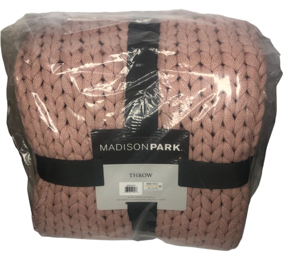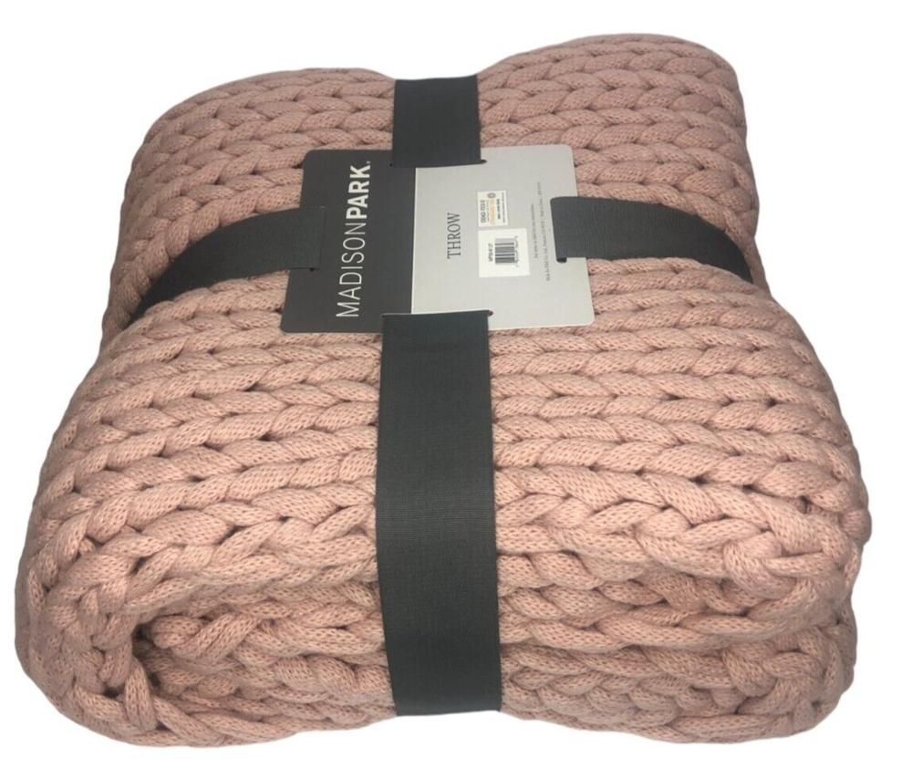 Madison Park Chunky Double Knit Handmade Throw Blanket BLUSH (Pink) PRODUCT FEATURES 50'' x 60'' Soft hand feel Double layered knitting technique that prevents threads from pulling Handmade chunky knit throw Cozy comfort with breathable properties for year-round use Modern design with boho inspired aesthetics Non-shedding for easy maintenance Made for the couch, bed or sofa - multipurpose for every occasion Perfect holiday gift idea for family and friends CONSTRUCTION & CARE Acrylic Spot clean, hand wash Imported Actual item Photos. Don't hesitate to contact us before purchasing if you have questions about the item's condition and shipping cost. If you receive an item with a noticeable flaw not shown in the photos, please contact us before leaving feedback. We strive to describe all items thoroughly and accurately. Please ask any questions you have before offering or buying. We will do our best to return your messages within 24 hours. Happy Shopping!
