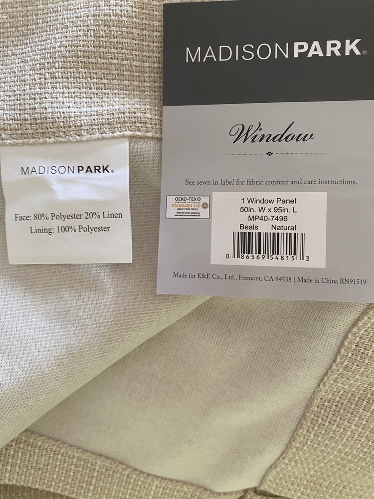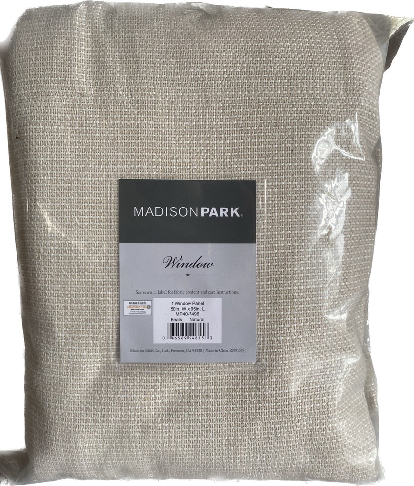 Madison Park window panel curtain, natural color, 50” wide x 95” long...