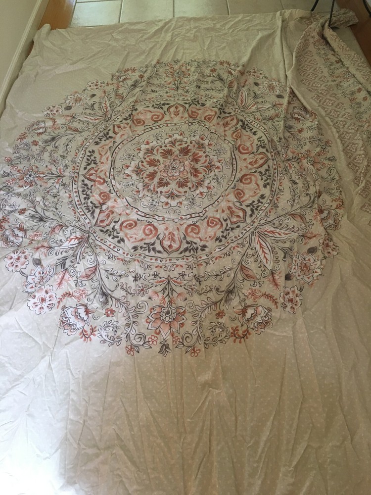 Madison Park Bed Duvet Cover ivory beige rust gray queen full 104x92 100% cotton top with cotton/poly blend backing, button closure. smoke free! get it before the dog does!...