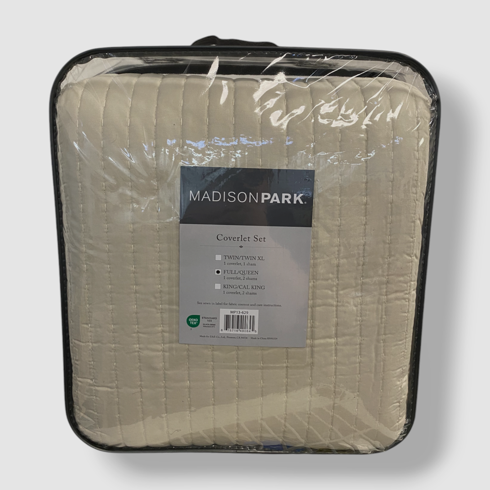 Madison Park Beige Khaki Keaton Quilted 3-Piece Coverlet Set, Full/Queen Description Features pick stitching details within the quilting, giving a distinct look to this collection Dimensions: coverlet 90" x 90", standard shams 20" x 26" Set includes: 1 coverlet and 2 standard shams Polyester with cotton fill Machine washable Imported About Us We sell only 100% authentic clothing from new with tags to gently used. We have a 100% authentic or money back guarantee on every item we sell. Items are listed daily so make sure to put us on your favorite! We have been in business for over 10 years selling tens of thousands of designer items. We strive to meet your designer needs at a quality price! Payment Shipping Returns Payment accepted via paypal, credit/debit card. Shipping is usually within 24 hours of purchase (M-F). Super fast service. Tracked delivery. 100% satisfaction guaranteed. Please review our eBay return policy for more details.
