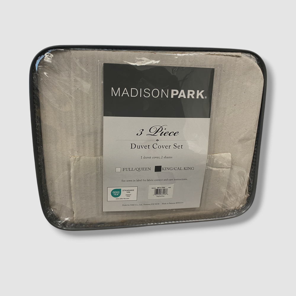 Madison Park Beige Mariana 3-Pc. Duvet Cover Set, King/California King Description King/California King duvet cover dimensions- 104" L x 92" W King shams dimensions- 20" L x 36" W Set includes 1 duvet cover, 2 shams Matching shams have 2" flange Button closure with inside corner ties to secure the insert (not included) Duvet and Sham- Cotton Percale, Cotton and Polyester Reverse Machine Washable Imported About Us We sell only 100% authentic clothing from new with tags to gently used. We have a 100% authentic or money back guarantee on every item we sell. Items are listed daily so make sure to put us on your favorite! We have been in business for over 10 years selling tens of thousands of designer items. We strive to meet your designer needs at a quality price! Payment Shipping Returns Payment accepted via paypal, credit/debit card. Shipping is usually within 24 hours of purchase (M-F). Super fast service. Tracked delivery. 100% satisfaction guaranteed. Please review our eBay return policy for more details.