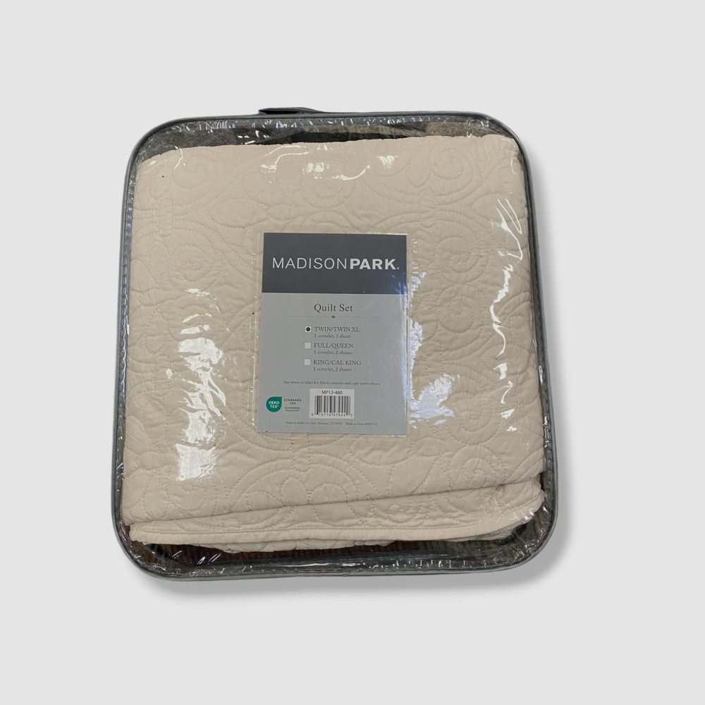 Madison Park Beige Twin/Twin XL Quebec 2-Piece Reversible Quilt Set Description Dimensions: coverlet 68" x 90", standard sham 20" x 26" Set includes: 1 coverlet and 1 standard sham Polyester with cotton fill Machine washable Imported About Us We sell only 100% authentic clothing from new with tags to gently used. We have a 100% authentic or money back guarantee on every item we sell. Items are listed daily so make sure to put us on your favorite! We have been in business for over 10 years selling tens of thousands of designer items. We strive to meet your designer needs at a quality price! Payment Shipping Returns Payment accepted via paypal, credit/debit card. Shipping is usually within 24 hours of purchase (M-F). Super fast service. Tracked delivery. 100% satisfaction guaranteed. Please review our eBay return policy for more details.