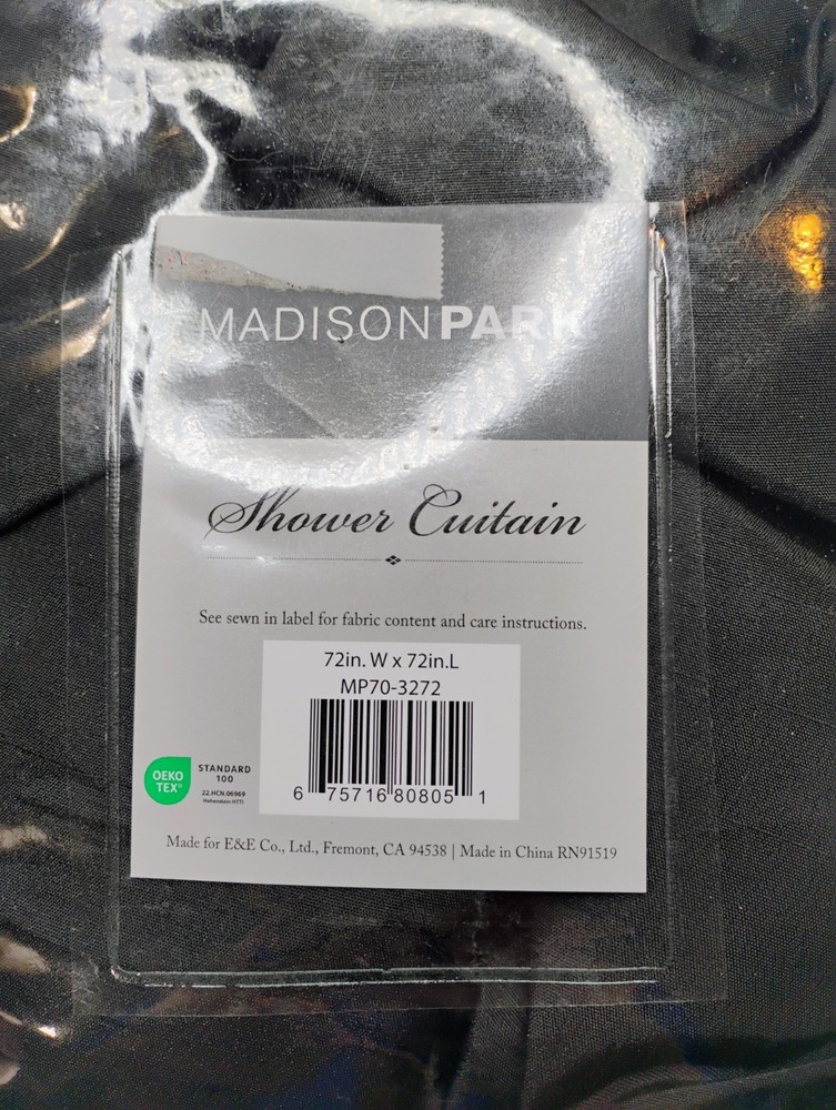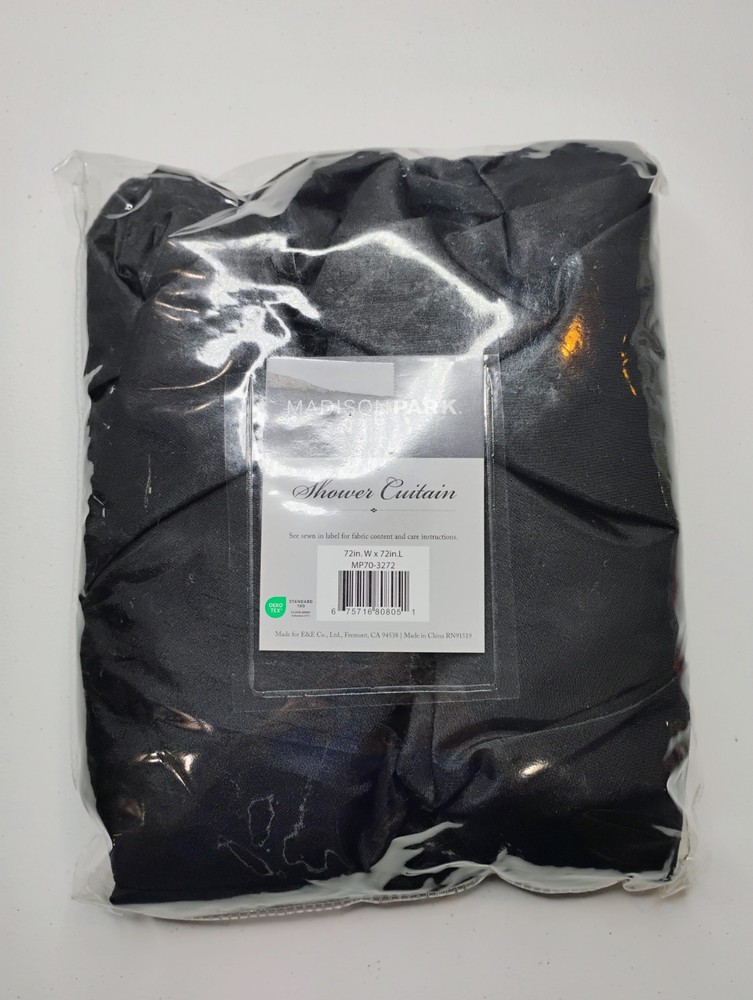 Madison Park Black Piedmont Solid Polyester Shower Curtain 72"x72". Condition is New. Shipped with USPS Ground Advantage....