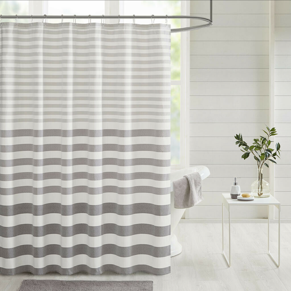 Brand New in Package Description Add a chic casual touch to your bathroom with our Madison Park Donna Stripe Blended Yarn Dyed Woven Shower Curtain. This 72 in. x72 in. shower curtain features a soft and classic grey ombre stripe pattern for a simple, yet modern look. The woven yarn dyed fabric of the stripe shower curtain is made from 55% cotton and 45% polyester, for a soft hand feel that is also machine washable for easy care. _____________________________________________________________________ Shipping & Return Policy All items are shipped within 1 - 2 business days after receipt of cleared payment. We ship daily so most items are shipped in 1 business day. Returns are accepted within 30 Days of receipt of the product - If you are not pleased with your purchase for any reason, simply ship it back to us within 30 days of receipt for a full refund of your purchase price (this does not include your original shipping fee and return shipping fee) Items must be unused and returned in original condition for a full refund. Unless you indicate otherwise, orders will be shipped to the address you have on file with eBay/PayPal. Packages returned due to an incorrect address will result in new shipping charges which will be the responsibility of the buyer. No refunds provided on missing packages due to an incorrect address. Most items are shipped USPS First Class or Priority. Fedex/UPS shipping may be utilized based on buyer location and size/weight of package. We use eBay International shipping for international sales. All 3-8 weeks for delivery. Combined shipping is available. Feedback We try our very best to make sure every customer is 100%, completely satisfied. If you like the items you purchase and the service we provided, please leave us a 5-star positive feedback. We would greatly appreciate it and will be happy to reciprocate with positive feedback. All attempts to extort sellers with threats of negative feedback are immediately reported to eBay and Safe Harbor. Thank you and we appreciate your business!