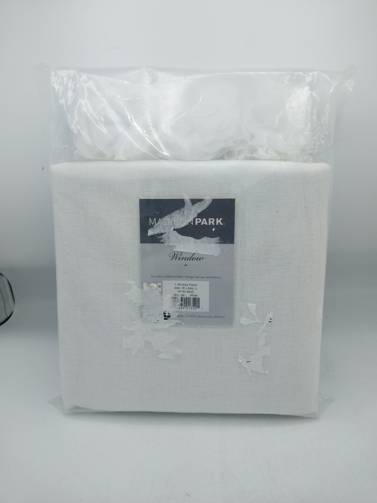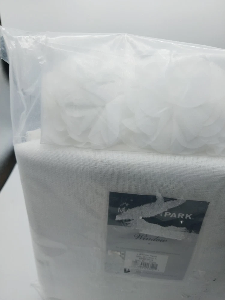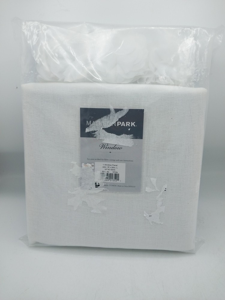 Simple and feminine in all the right ways Madison Park Rosette Tab Top Solid Window Panel Embellished with Flower offers a gorgeous one-of-a-kind look to your home. This solid white panel features a tab top finish and beautiful removable floral pins that give your room a decorator?s touch. The lightweight faux linen semi-sheer fabric filters the perfect amount of light into your home while creating a soft airy feel - for the perfect shabby chic update to your decor. Window panel is machine washable for easy care while floral pins are spot clean only. Fits up to a 2 diameter