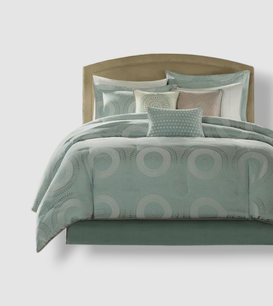Madison Park Blue Baxter 7-Piece Comforter Set, Size California King Description Dimensions: 1 Comforter: 104"W x 92"L, 2 Shams: 20"W x 36"L + 2"D, 1 Bedskirt: 72"W x 84"L + 15"D, 1 Decorative Pillow: 12"W x 18"L, 1 Decorative Pillow: 16"W x 16"L, 1 Decorative Pillow: 18"W x 18"L Set includes: 1 Comforter, 2 Shams, 1 Bedskirt, 3 Decorative Pillows Beautiful geometric printed motifs on comforter and shams Embroidery and fabric manipulation skills to enhance texture and depth Machine Washable and steam iron for wrinkle removal Comforter and shams: polyester; Bedskirt drop: cotton; Bedskirt platform: polypropylene; Decorative pillows: polyester; polyester fill; Comforter fill: polyester 270 grams per square meter Machine washable. Spot clean pillows. Imported About Us We sell only 100% authentic clothing from new with tags to gently used. We have a 100% authentic or money back guarantee on every item we sell. Items are listed daily so make sure to put us on your favorite! We have been in business for over 10 years selling tens of thousands of designer items. We strive to meet your designer needs at a quality price! Payment Shipping Returns Payment accepted via paypal, credit/debit card. Shipping is usually within 24 hours of purchase (M-F). Super fast service. Tracked delivery. 100% satisfaction guaranteed. Please review our eBay return policy for more details.