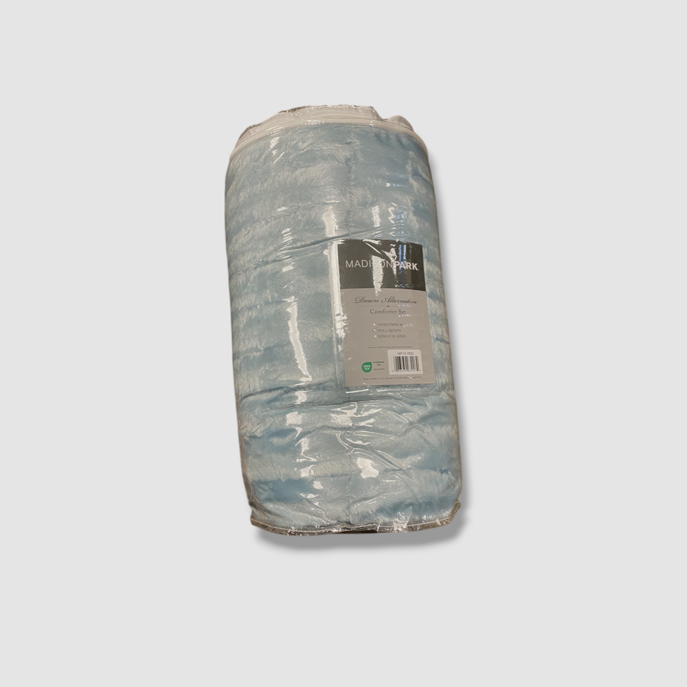 Madison Park Blue Full/Queen York Brushed Faux Fur Comforter 3pc Set Description Dimensions: 1 Comforter: 90"W x 90"L, 2 Standard Shams: 20"W x 26"L + 2"D Includes: 1 Comforter, 2 Standard Shams All over pleated faux fur comforter set Fabric and filling are both polyester and hypoallergenic Fabric: polyester 260 GSM, reverses to 180 GSM; polyester fill Machine washable Imported About Us We sell only 100% authentic clothing from new with tags to gently used. We have a 100% authentic or money back guarantee on every item we sell. Items are listed daily so make sure to put us on your favorite! We have been in business for over 10 years selling tens of thousands of designer items. We strive to meet your designer needs at a quality price! Payment Shipping Returns Payment accepted via paypal, credit/debit card. Shipping is usually within 24 hours of purchase (M-F). Super fast service. Tracked delivery. 100% satisfaction guaranteed. Please review our eBay return policy for more details.