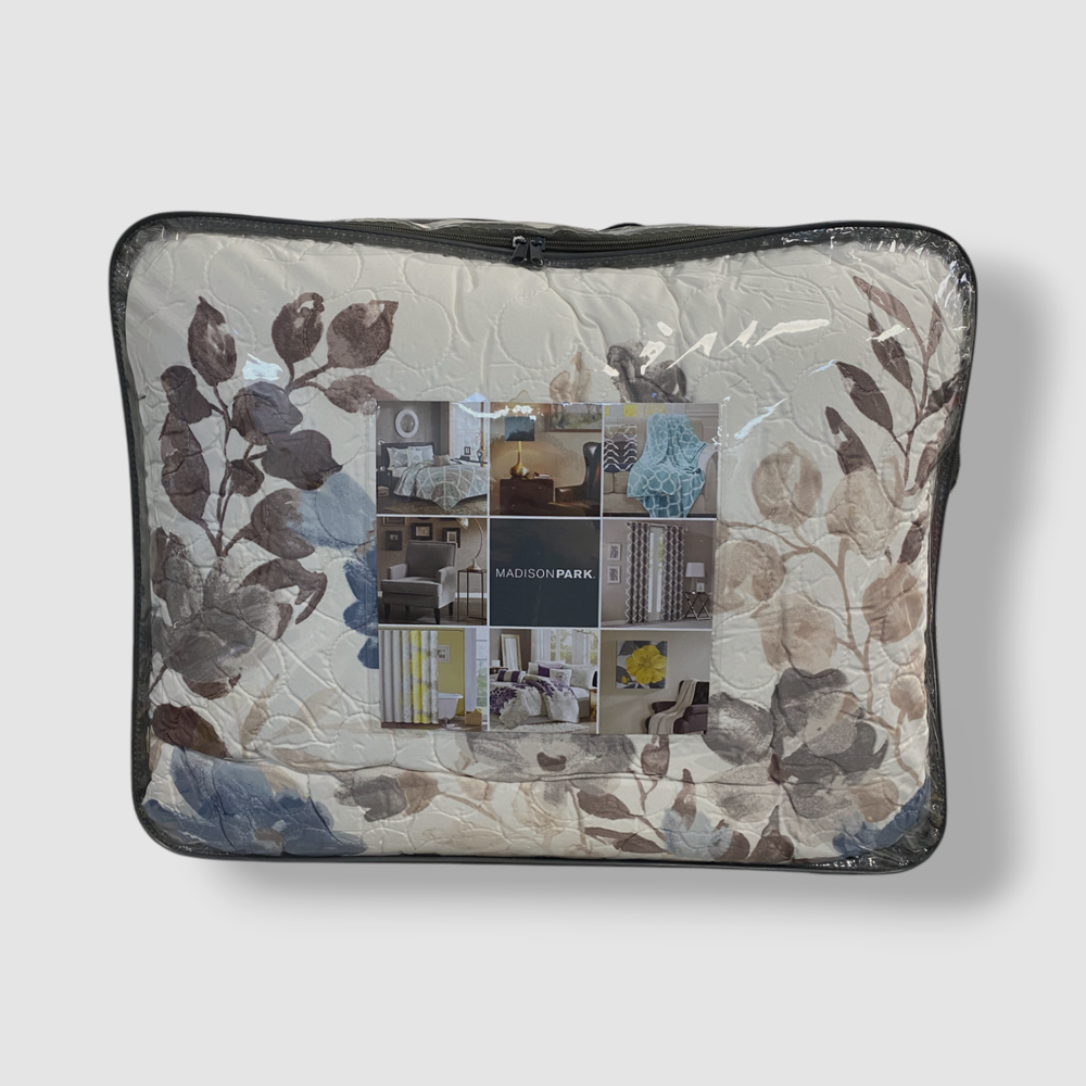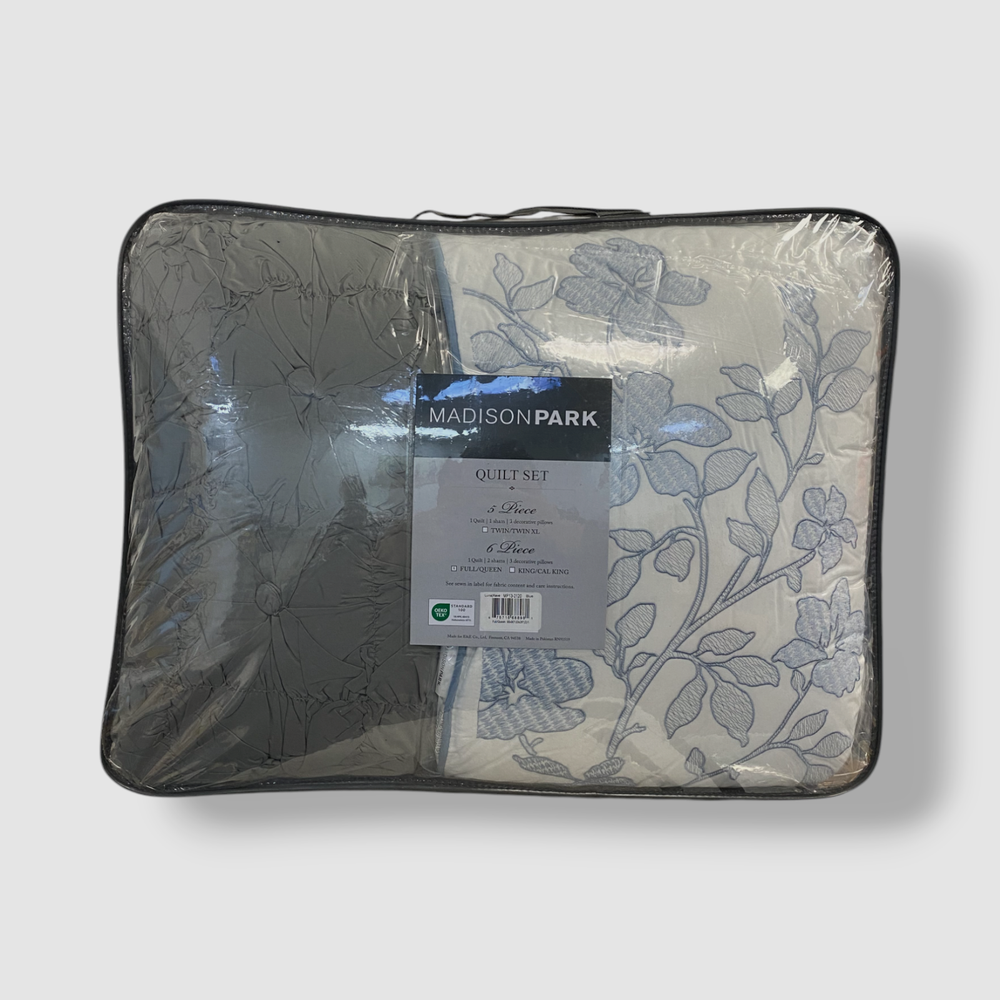 Madison Park, Blue Luna 6-Pc. Floral Reversible Quilt Coverlet Set Full/Queen Description Set includes: quilt (90" x 90"), three decorative pillows (18" x 18", 16" x 16", 12" x 18") and two standard shams (20" x 26") Polyester, cotton Machine washable. Spot clean pillows. Imported Comes in original packaging About Us We sell only 100% authentic clothing from new with tags to gently used. We have a 100% authentic or money back guarantee on every item we sell. Items are listed daily so make sure to put us on your favorite! We have been in business for over 10 years selling tens of thousands of designer items. We strive to meet your designer needs at a quality price! Payment Shipping Returns Payment accepted via paypal, credit/debit card. Shipping is usually within 24 hours of purchase (M-F). Super fast service. Tracked delivery. 100% satisfaction guaranteed. Please review our eBay return policy for more details.