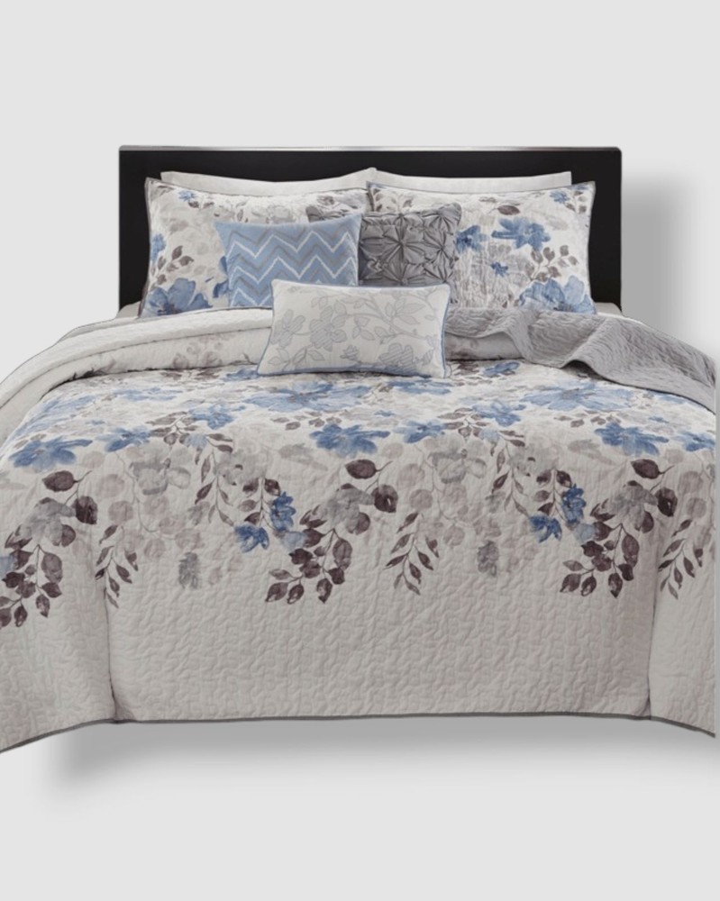 Madison Park Blue Luna 6-Pc. Floral Reversible Quilt Coverlet Set King/Cal King Description Set includes: quilt (104" x 94"), three decorative pillows (18" x 18", 16" x 16", 12" x 18") and two king shams (20" x 36") Polyester, cotton Machine washable. Spot clean pillows. Imported Comes in original packaging About Us We sell only 100% authentic clothing from new with tags to gently used. We have a 100% authentic or money back guarantee on every item we sell. Items are listed daily so make sure to put us on your favorite! We have been in business for over 10 years selling tens of thousands of designer items. We strive to meet your designer needs at a quality price! Payment Shipping Returns Payment accepted via paypal, credit/debit card. Shipping is usually within 24 hours of purchase (M-F). Super fast service. Tracked delivery. 100% satisfaction guaranteed. Please review our eBay return policy for more details.