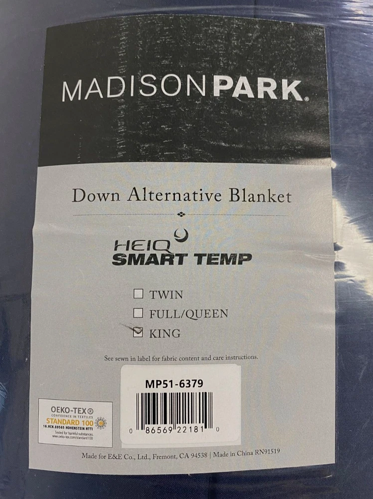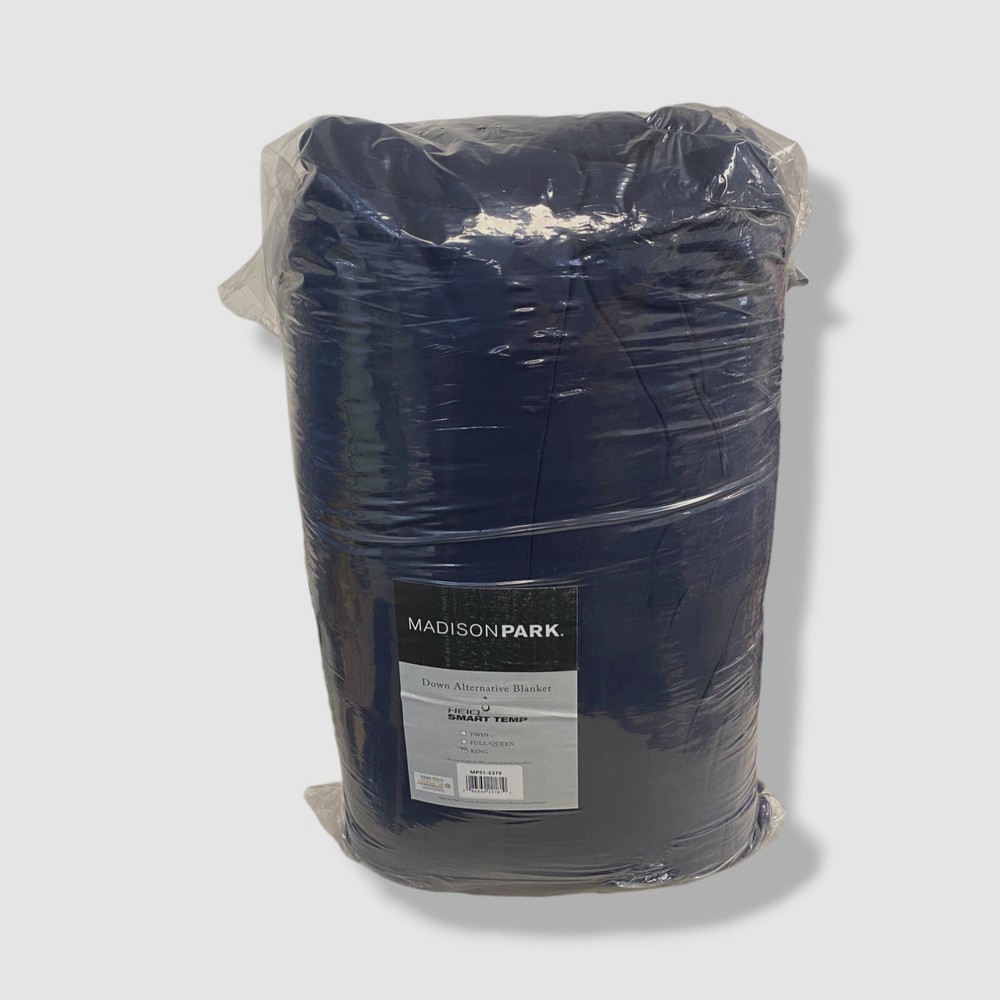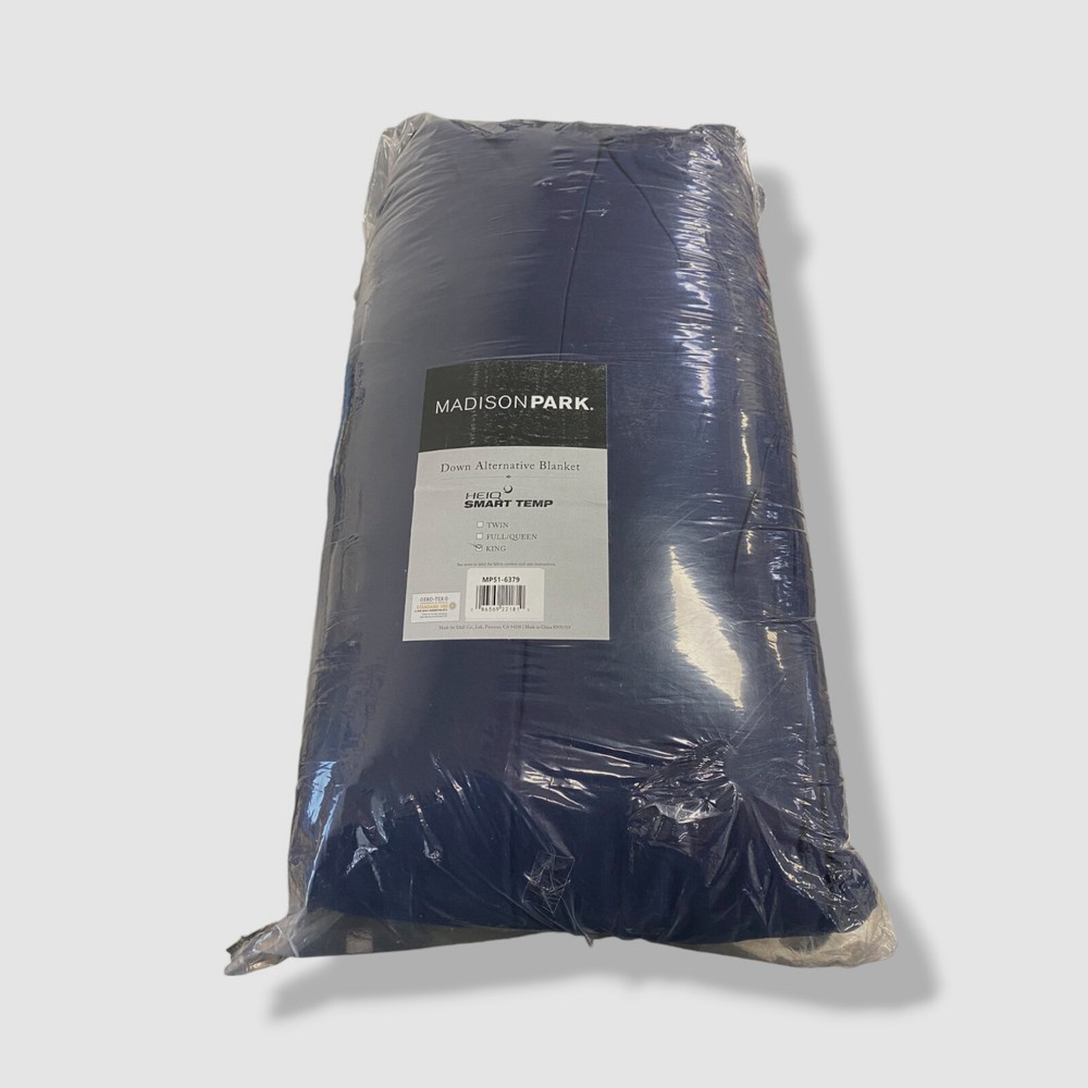 Madison Park Blue Reversible HeiQ Smart Temp Down Alternative King Size Blanket Description King: 108" W x 90" L Reversible plush to solid microfiber down alternative blanket Soft and warm for any season Excellent for layering or individual use Box sewing to secure filling HeiQ smart temperature regulating treatment, helps to maintain a balanced temperature day and night Polyester Fill: Polyester Fill Weight: 2.5 oz/yd2 Machine washable and steam iron for wrinkle removal Imported About Us We sell only 100% authentic clothing from new with tags to gently used. We have a 100% authentic or money back guarantee on every item we sell. Items are listed daily so make sure to put us on your favorite! We have been in business for over 10 years selling tens of thousands of designer items. We strive to meet your designer needs at a quality price! Payment Shipping Returns Payment accepted via paypal, credit/debit card. Shipping is usually within 24 hours of purchase (M-F). Super fast service. Tracked delivery. 100% satisfaction guaranteed. Please review our eBay return policy for more details.