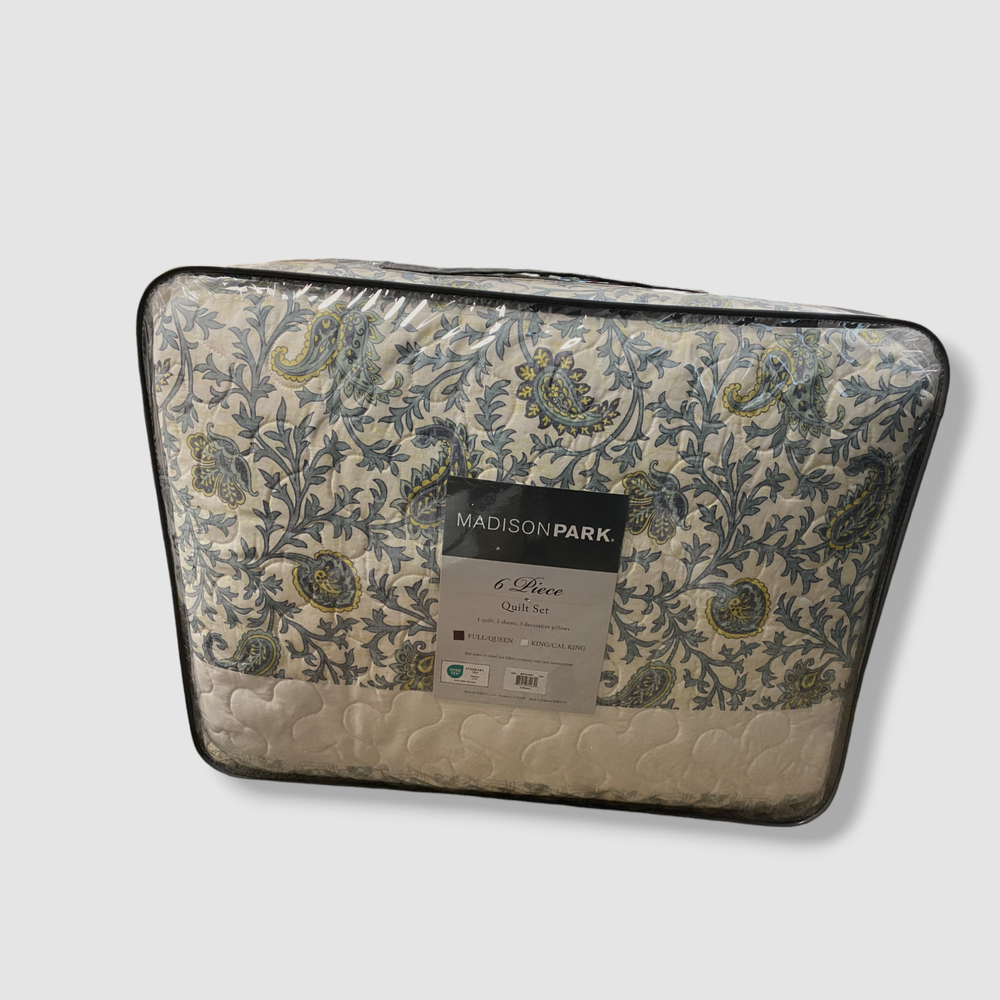 Madison Park Blue Reversible Stella Cotton Percale with Throw Pillows Quilt Set Description Set includes: full/queen quilt (90" x 90"), two standard shams (20" x 26") and three decorative pillows (16" x 16", 18" x 18", 12" x 18") Asian American & Pacific Islander Owned, Woman Owned Cotton, polyester Machine washable. Spot clean pillows. Imported About Us We sell only 100% authentic clothing from new with tags to gently used. We have a 100% authentic or money back guarantee on every item we sell. Items are listed daily so make sure to put us on your favorite! We have been in business for over 10 years selling tens of thousands of designer items. We strive to meet your designer needs at a quality price! Payment Shipping Returns Payment accepted via paypal, credit/debit card. Shipping is usually within 24 hours of purchase (M-F). Super fast service. Tracked delivery. 100% satisfaction guaranteed. Please review our eBay return policy for more details.