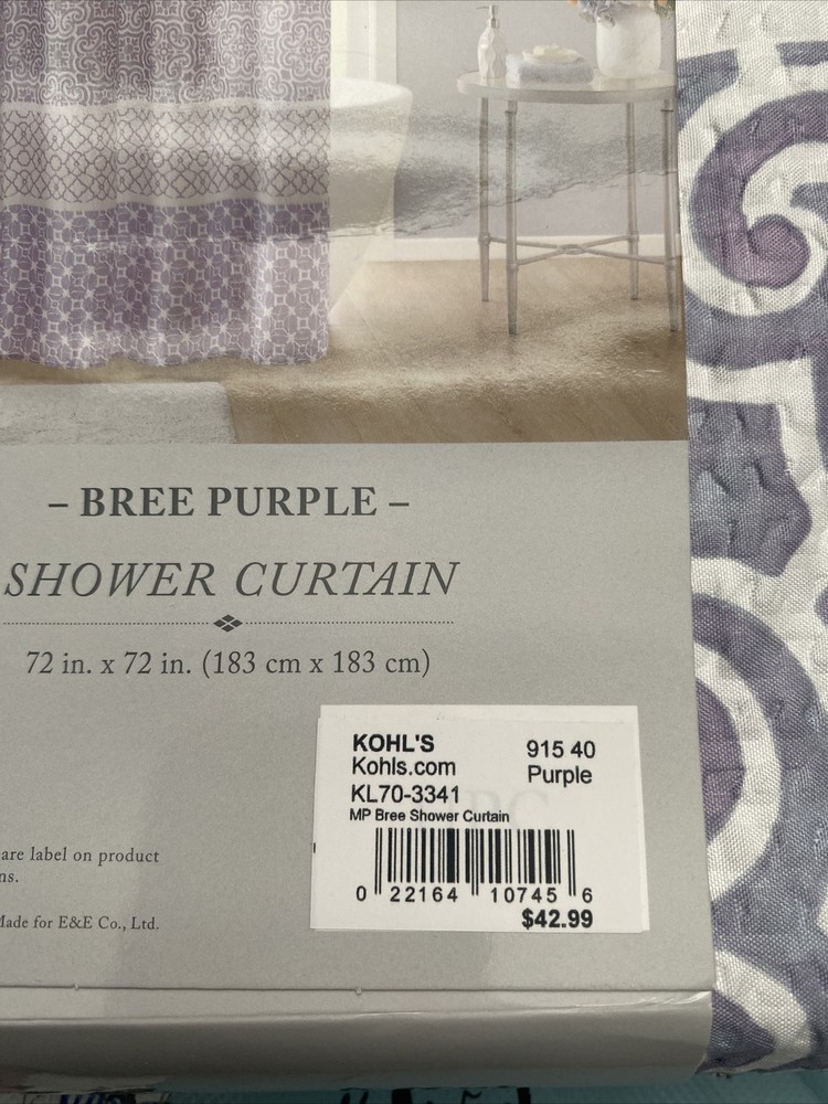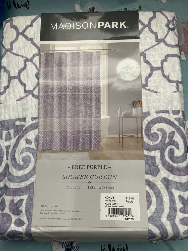 Madison Park Bree Purple Printed Seersucker Shower curtain NEW.