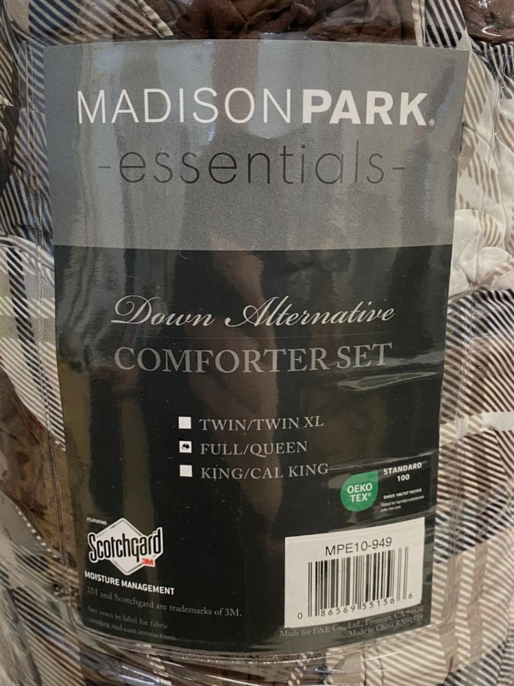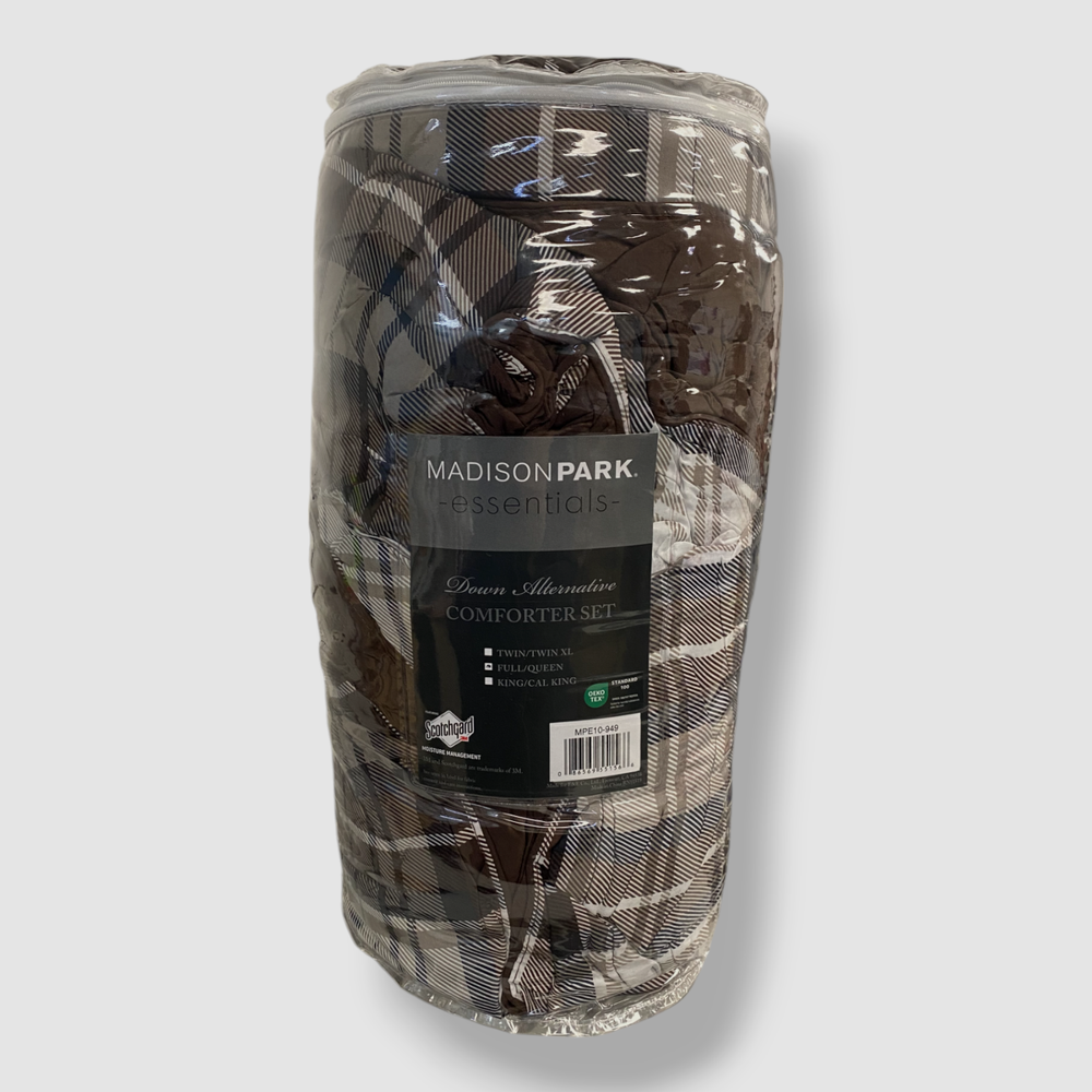 Madison Park Brown Plaid Parkston Reversible 3-Piece Comforter Set, Full/Queen Description featuring 3M Scotchgard moisture management treatment to help wick away moisture Set includes: comforter (86" x 90") and two standard shams (20" x 26") Down alternative fill in comforter Polyester Machine washable Imported About Us We sell only 100% authentic clothing from new with tags to gently used. We have a 100% authentic or money back guarantee on every item we sell. Items are listed daily so make sure to put us on your favorite! We have been in business for over 10 years selling tens of thousands of designer items. We strive to meet your designer needs at a quality price! Payment Shipping Returns Payment accepted via paypal, credit/debit card. Shipping is usually within 24 hours of purchase (M-F). Super fast service. Tracked delivery. 100% satisfaction guaranteed. Please review our eBay return policy for more details.