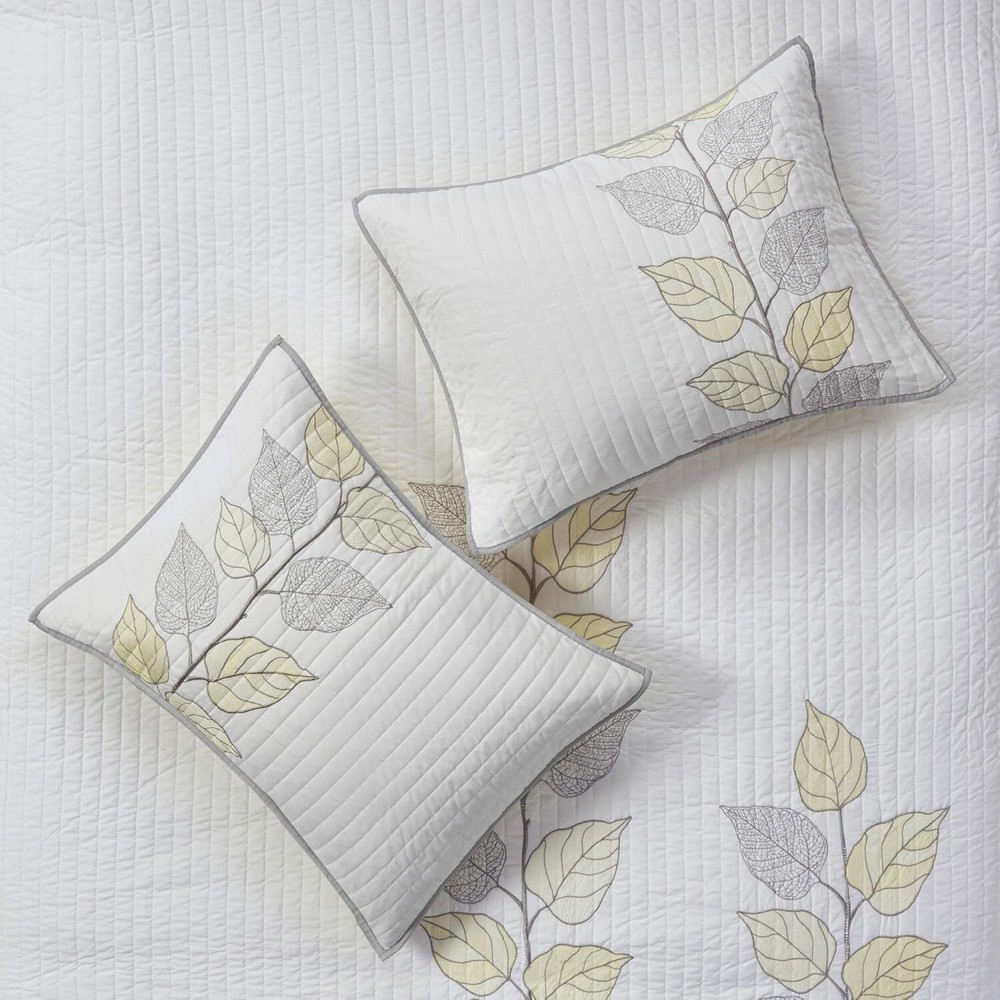 Madison Park Caelie Quilted 6-Pc. Quilt Set Size Full/Queen New Includes 6 Piece Quilt Set 1 Coverlet, 2 Shams, 3 Decorative Pillow Brand: Madison Park Color: Leaf Yellow Size: Full/Queen New
