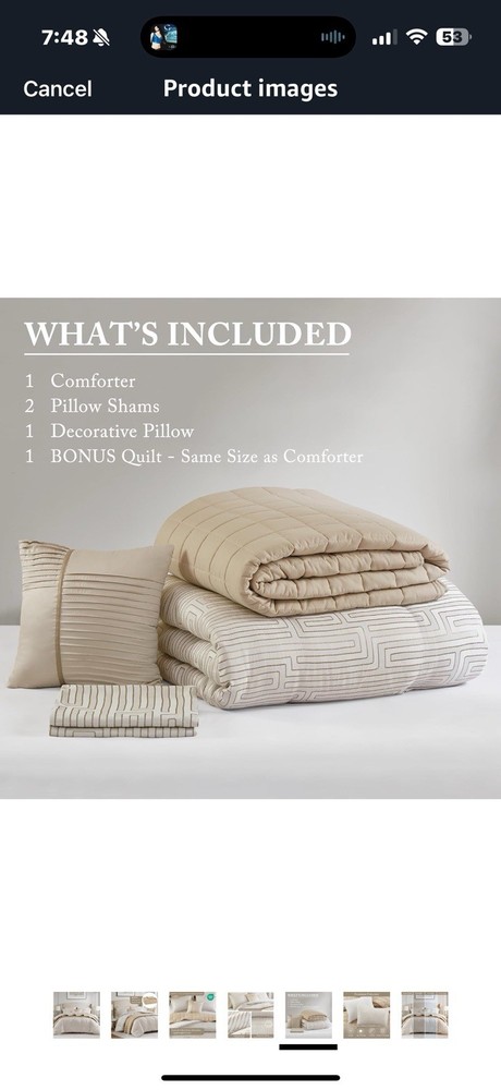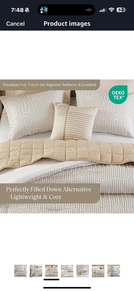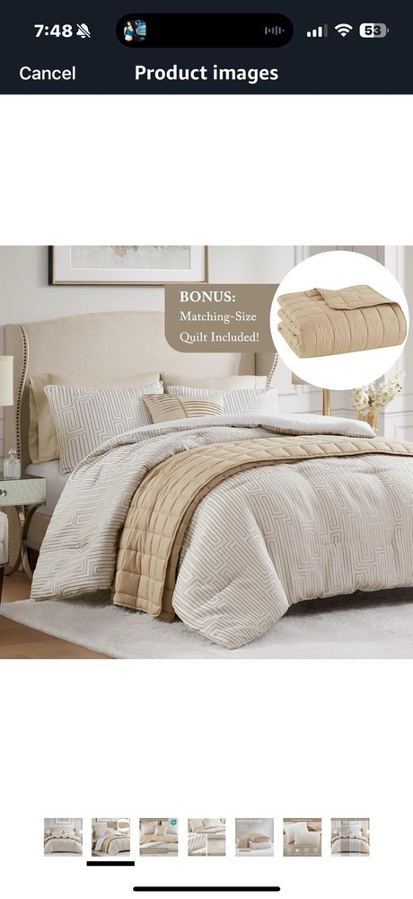 Madison Park Cal King Comforter Set Jacquard Metallic Thread Comforters, All Season Comforter & Quilt Bed Set Cal King Size Comforter, Pillow, Shams, Royce, Cal King Ivory 5 Piece Color: Ivory Size: California King Size California King Included Components 1 Comforter,2 King Shams,1 Decorative Pillow,1 Quilt Color Ivory Style Glam/Luxury Brand Madison Park Theme Glam/Luxury Jacquard Fabric, Polyester Comforter & Quilt Set – Experience the perfect blend of comfort and luxury, featuring a lustrous geometric jacquard comforter paired with a cozy quilt providing year-round comfort and flexibility to complement every season Luxurious Jacquard – Timeless elegance meets modern sophistication with the Greek fret jacquard design, woven in metallic thread detailing. Subtle lines create a refined shine, bringing an understated yet luxurious touch to your bedroom décor All Season — Crafted from premium poly-jacquard for enhanced softness, filled with versatile poly-fill, offering a lightweight yet fluffy feel. Perfect for year-round comfort. Oeko-Tex Certified for high quality standard ensuring comfort & wellness Set include: 1 Comforter: 104"W x 98"L, 2 King Shams: 20"W x 36"L, 1 Quilt: 106"W x 96"L , 1 Decorative Pillow: 18"Wx18"L Easy Care - Our poly jacquard comforter set offers durability to withstand daily wear and tear. Simply machine wash cold. Gently and separately. Do not bleach, Tumble dry low. Iron on medium temperature if needed. Decorative pillows require spot cleaning Color Ivory Style Name Glam/Luxury Theme Glam/Luxury Materials & Care Material Type Comforter/Sham: 100% polyester jacquard face and 95gsm microfiber solid back, Comforter Fill: 270gsm polyester fill, Pillow: 100%polyester cover, poly fill, Quilt: microfiber solid face and back, 150gsm poly fill Fabric Type Jacquard Fabric, Polyester Product Care Instructions Machine Wash Additional details Size California King