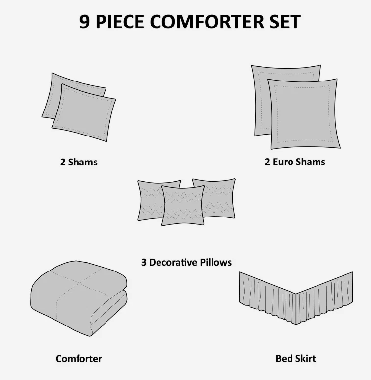 Maible Complete Comforter and Cotton Sheet Set Cal King by Madison Park Transform your bedroom into a comfortably casual retreat with the Madison Park Essentials Maible 9 Piece Complete Comforter and Cotton Sheet Set. A beautiful printed floral design, in blush and white hues, adorns the grey ultra-soft microfiber comforter and shams, for an enchanting look. An embroidered decorative pillow and a solid grey bed skirt add chic finishing touches to the bedding set. Also included a 100% cotton sheet set with pillowcases, a flat and a fitted sheet that fits up to a 16-inch 14-inch in Twin size mattress features a printed design that complements the comforter. Machine washable for easy care, this complete bed and sheet set provides a complete makeover for your bedroom decor.