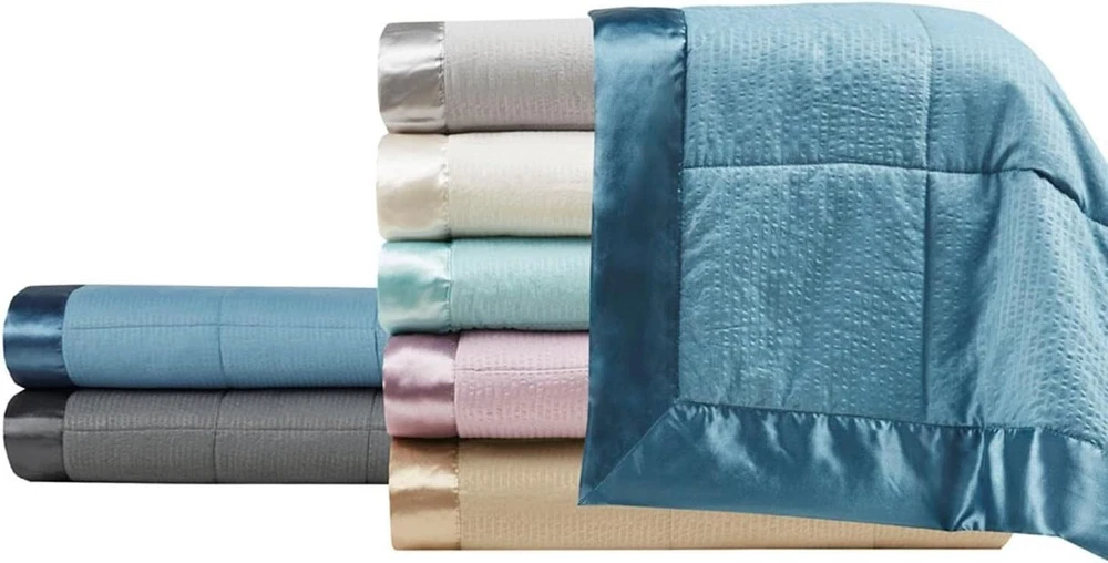 ***Item Description:*** S-273-A-086569637444 About this item 100% Microfiber Madison Park brings you a premium oversized down alternative blanket featuring 3M Scotch Gard treatment. The 3M treatment wicks moisture, keeping your blanket dry and fresh longer. The blanket features end to end box quilting to prevent the fill from shifting, providing an even distribution of warmth. BETTER SLEEP - We simply offer you a really soft and cozy high quality brushed microfiber blanket. It features a 3M Scotchgard Moisture Management Treatment that wicks away moisture, keeping you warm and dry through the night. The treatment also helps most stains come out in the wash. ALL SEASON - Our all season blanket offers a soft and lightweight material perfect Summer blanket and warm enough for Spring season. Madison Park Collection aims to offer you a better quality sleeping experience. In the winter our blanket can be the perfect layering piece, adding a decorative element of soft texture for extra warmth and coziness during the cold season MAKE IT LAST - It will last if you maintain it by using machine wash cold on gentle cyle only, and tumble dry on low heat. And NO BLEACH. Commercial size front loading washer is recommended INCLUDES - 1 Blanket: 96"x90"