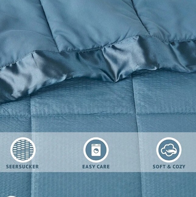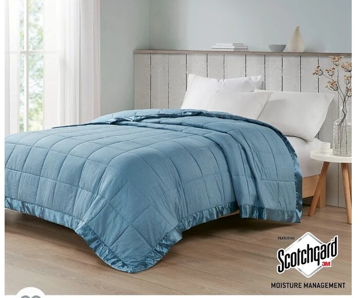 Details Material Polyester Color Taupe Brand Madison Park Special Feature Reversible, Lightweight, Breathable Blanket Form Quilt About this item 100% Polyester Madison Park brings you a premium oversized down alternative blanket featuring 3M Scotch Gard treatment. The 3M treatment wicks moisture, keeping your blanket dry and fresh longer. The blanket features end to end box quilting to prevent the fill from shifting, providing an even distribution of warmth. INCLUDES- 1 Blanket, Full/Queen size, 90"X96" ALL SEASON - Our all season blanket offers a soft and lightweight material perfect Summer blanket and warm enough for Spring season. Madison Park Collection aims to offer you a better quality sleeping experience. In the winter our blanket can be the perfect layering piece, adding a decorative element of soft texture for extra warmth and coziness during the cold season EASY CARE - Machine wash cold on gentle cycle, tumble dry on low heat, do not bleach. Make sure there is enough space for full movement in the machines