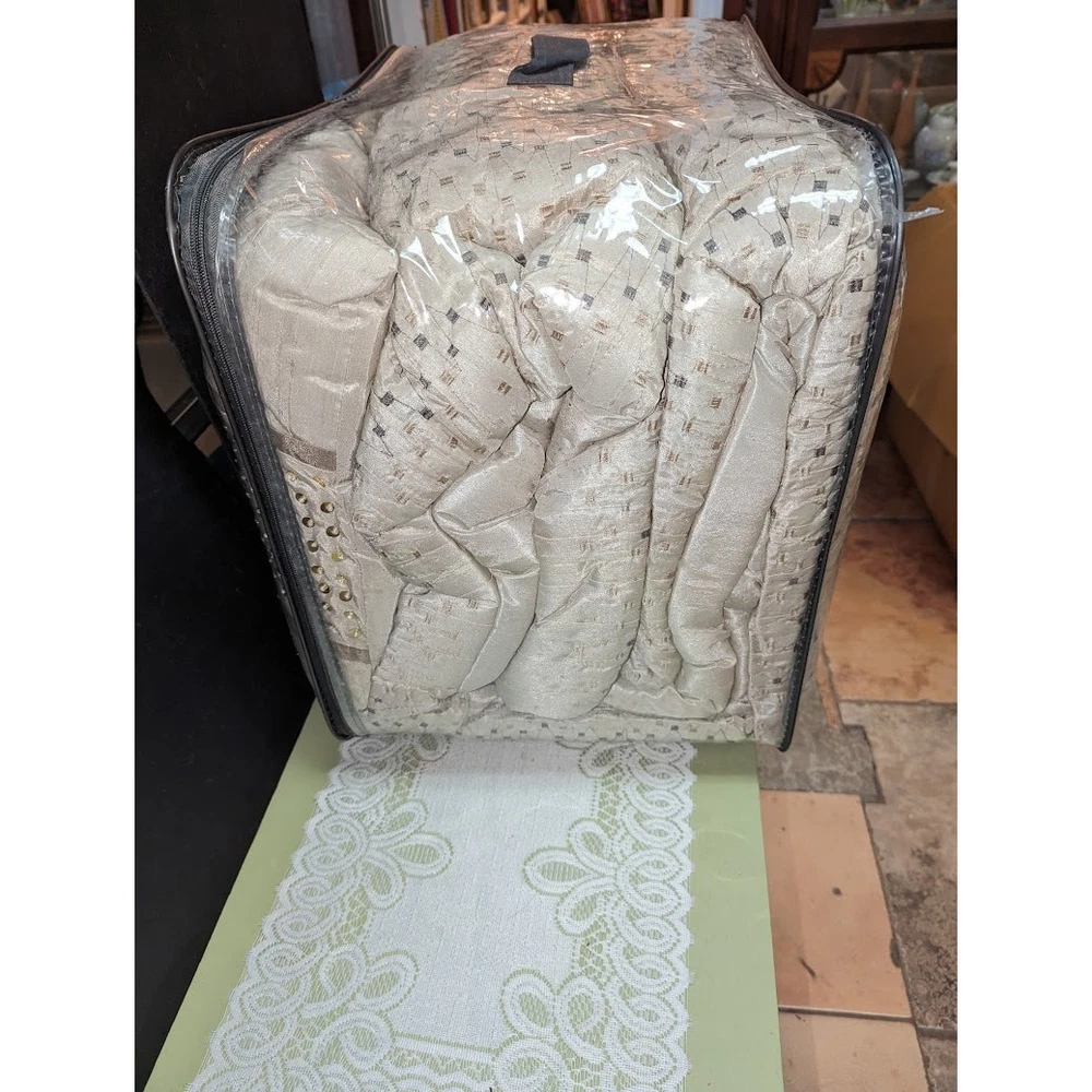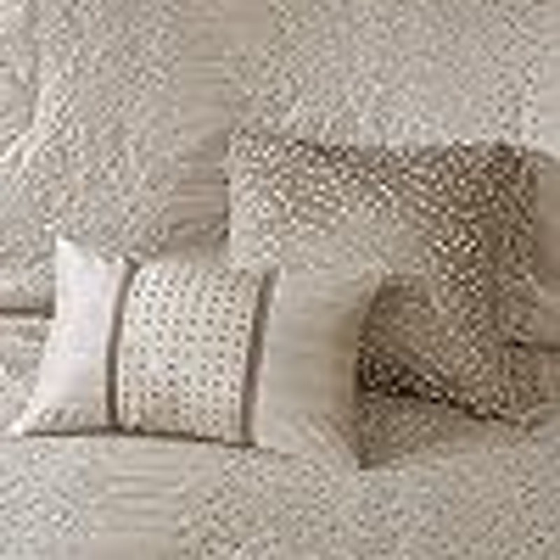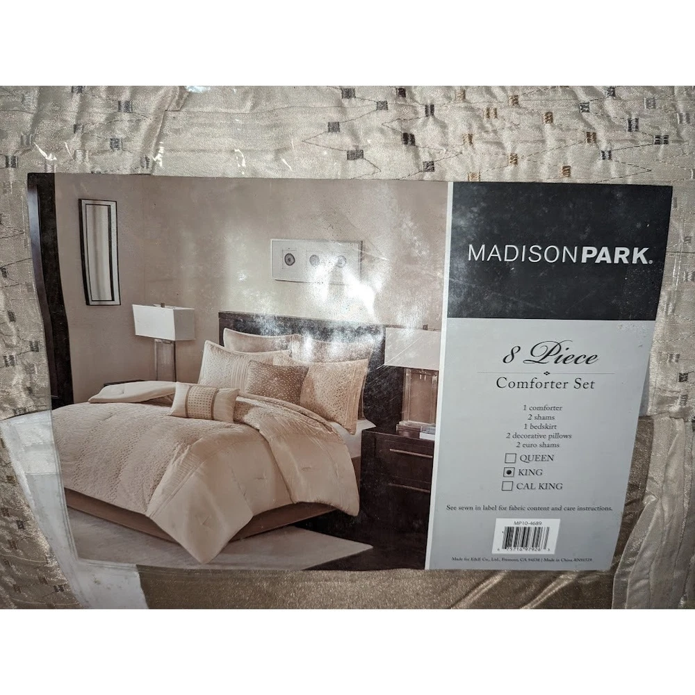 <![CDATA[<div>Madison Park Camelia 8 Pieces King Comforter Set Faux Silk Neutral Brown NEW Description: Update your bedroom with the Madison Park Camelia 8 Piece Embroidered Comforter Set. The faux silk pieced comforter and shams flaunt a geometric embroidery design that adds charm and texture to the top of the bed. Two polyoni Euro shams provide a rich color to the bedding set, while a coordinating bed skirt offers a clean and crisp finish Machine Washable, Spot Clean Pillows